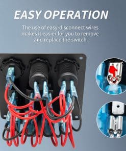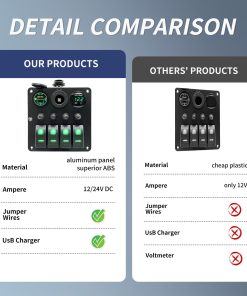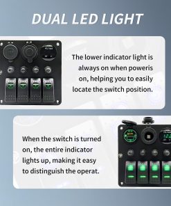 El panel de interruptores de palanca es resistente, duradero e impermeable IP65, fabricado con plástico de alta calidad y pines bien conductores que garantizan una durabilidad duradera, altamente optimizado para uso general. La capacidad de sellado excelente del panel de interruptores de palanca alcanza la protección contra agua ip65, brindándole una experiencia agradable. Simple instalación, puede reemplazar cualquier interruptor spst de 5 pines defectuoso. El panel de interruptores de palanca de 5 pines on-off con diseño spst (single pole single throw) viene junto con un conjunto de cables puente, fácil de instalar, incorpora dos LED premium que emiten una luz suave para iluminar los patrones, fácil para que encuentre el interruptor en la oscuridad. Amplia aplicación, adecuado para automóviles, camiones, barcos, motocicletas, yates con interruptor estándar de 5 pines, calificado a 20amp/12vdc y 10amp/24vdc, disponible para la actualización de la mayoría de las instalaciones eléctricas. El panel de interruptores de palanca se adapta a la mayoría de los vehículos como coches, SUV, ATV, UTV, 4×4, motocicletas, camiones, jeeps, barcos, yates y otros vehículos todoterreno, para controlar barra de luces LED, luces de trabajo LED, luces antiniebla, luces traseras y luces auxiliares, etc. Garantía de 12 meses, somos una fábrica especializada en la producción de paneles de interruptores de palanca con un sistema de inspección de calidad integral. Con el fin de proporcionar una buena experiencia a cada consumidor, ofrecemos servicio postventa y servicio de preventa en línea las 24 horas. Si encuentra algún problema durante el uso o la instalación del panel de interruptores de palanca, no dude en contactarnos en cualquier momento.