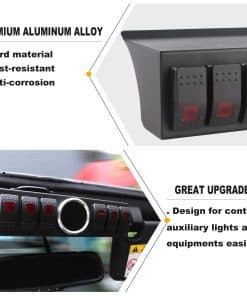 Panel de interruptores de 6 vías para techo con caja de relés para control del sistema compatible con Jeep Wrangler JK Sahara Rubicon 2007-2017 (NO es compatible con modelos JL 2018+). Panel de interruptores de 6 vías compatible con Jeep Wrangler JK & Unlimited JK 2007-2017 (NO ES COMPATIBLE CON MODELOS JL 2018+). Panel de interruptores de techo fabricado en aleación de aluminio de primera calidad, acabado en polvo resistente a la oxidación y la corrosión, estabilidad y resistencia. Puede alimentar hasta 900 vatios de luces o equipos al mismo tiempo. Diseño de protección contra sobrecalentamiento, le proporciona un entorno seguro para todas las conexiones. Diseño todo en uno, incorpora un voltímetro en el centro del panel de interruptores, para notar fácilmente la condición de voltaje de los vehículos. Voltaje de funcionamiento de 12-24V DC, este panel de interruptores con caja de relés le permite controlar hasta 6 dispositivos diferentes, como Barra de luces LED, Luz LED de pod, Luz de marcha atrás trasera, Luz de roca, Luz antiniebla, Bombas de aire, Audio y Energía para malacate, etc. El cuadro de fusibles y relés se puede instalar fácilmente en su compartimento del motor, no se requiere cortes ni perforaciones. Paquete incluye: Panel de interruptores de 6 vías para techo + Caja de fusibles y relés + Soportes de montaje + Cintas 3M + Tornillos + Cinta + Manual de instalación. Ofrecemos una garantía de calidad de 12 meses y servicios postventa las 24 horas, cualquier pregunta no dude en contactarnos.