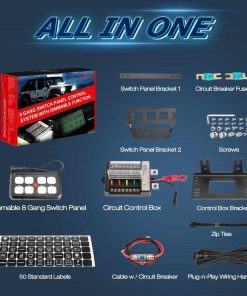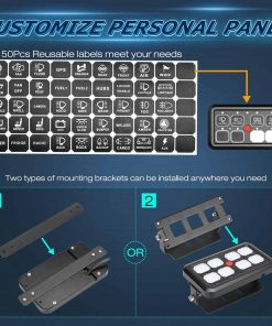 3. FÁCIL DE INSTALAR – El arnés de cables plug-n-play simplifica el proceso de instalación, reduciendo significativamente el tiempo de configuración. Elimina la molestia de un cableado complejo o la necesidad de cortar grandes agujeros en tu vehículo. Puedes instalarlo en cualquier lugar con dos tipos de soportes de montaje y personalizar tu panel de interruptores con 50 etiquetas.