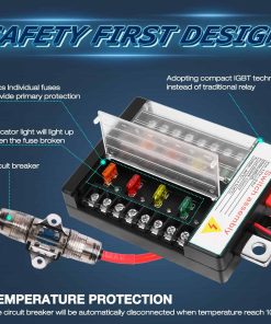 2. DISEÑO DE SEGURIDAD PRIMERO – Nuestro diseño incorpora tecnología IGBT para una protección superior contra sobrevoltaje y sobrecorriente, superando a los relés tradicionales. Con protección contra polaridad inversa y térmica, junto con un disyuntor de 60A, asegura que todas las luces LED y accesorios eléctricos conectados funcionen de forma segura.