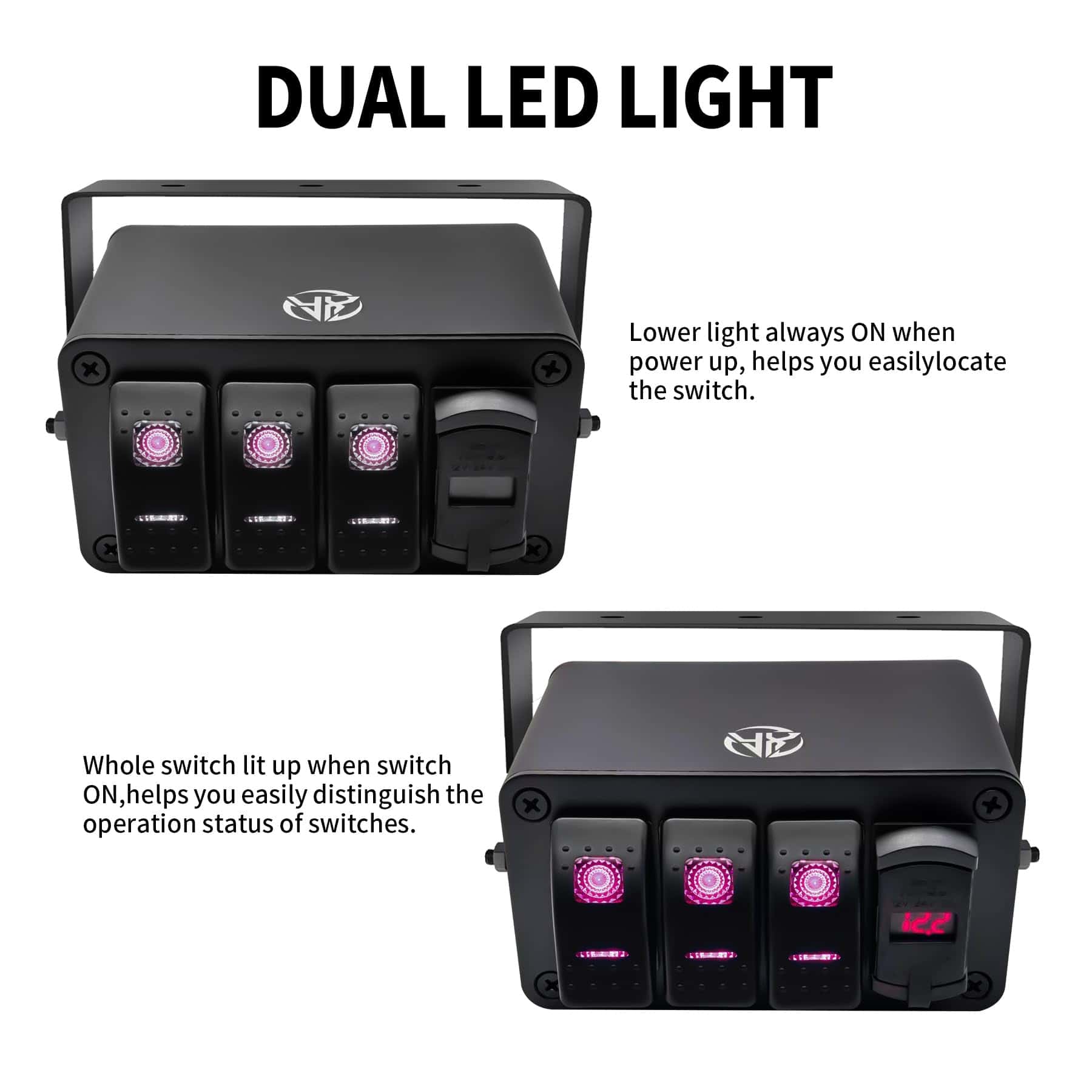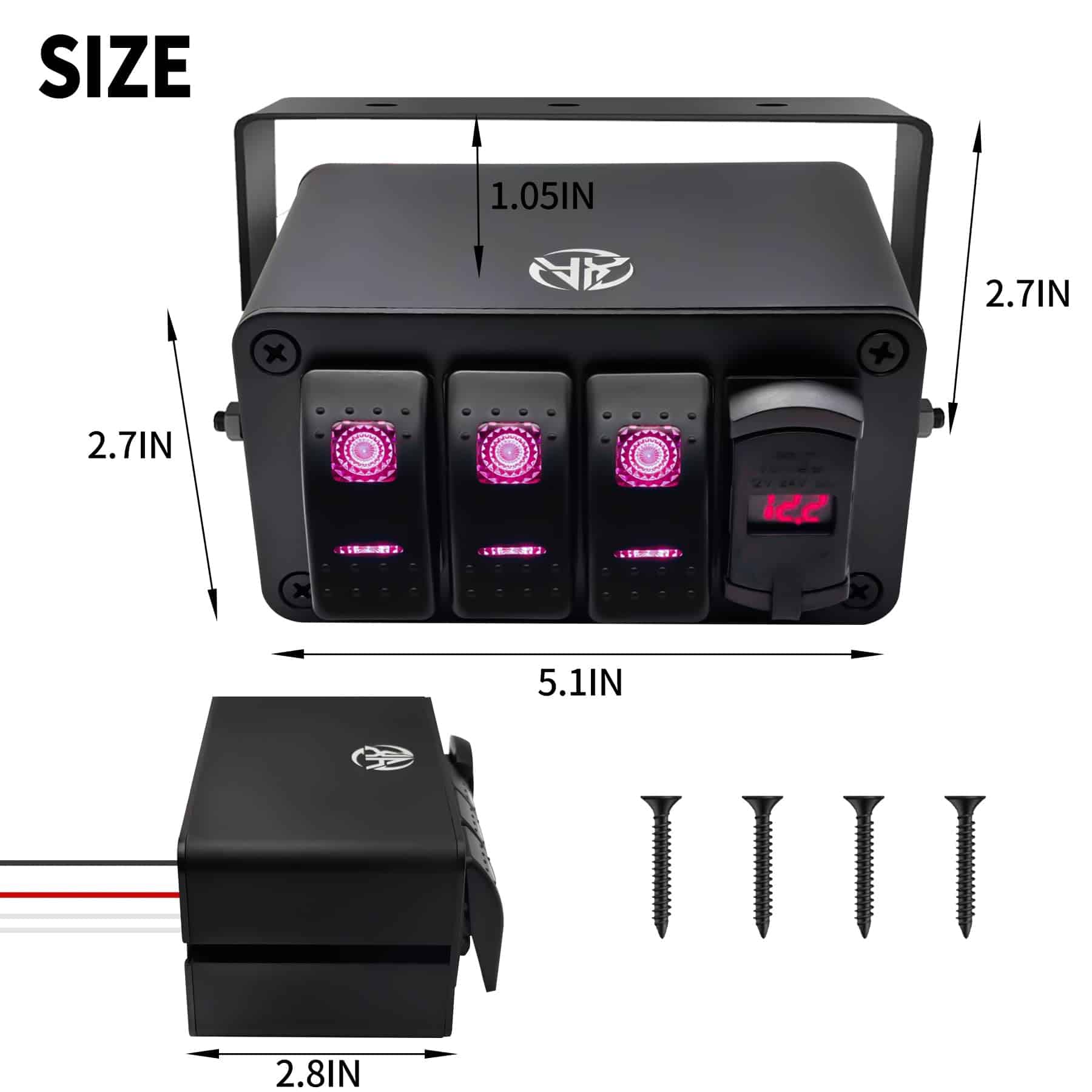 1. Panel de interruptores de palanca de 3 Gang Rocker & STURDY, DURABLE diseñado para ser impermeable y a prueba de polvo, hecho de aluminio de calidad y protege los interruptores contra cortocircuitos y daños. El panel de interruptores de palanca está hecho de plástico de alta calidad y pines bien conductores; garantizan una durabilidad duradera, altamente optimizada para uso general. El panel de interruptores marinos tiene un excelente rendimiento de sellado que alcanza el nivel impermeable ip65, lo que le dará una experiencia agradable. 2. AMPLIA APLICACIÓN, Cargador rápido & Voltímetro PD Type C y QC 3.0 cargador USB le permite cargar dos dispositivos simultáneamente a toda velocidad, hace que el cargador sea un 40% más rápido que los cargadores convencionales. El voltímetro está integrado en el centro del cargador USB, muestra claramente las lecturas actuales de los voltios de trabajo, permitiendo notar fácilmente la condición de voltaje de los vehículos. El panel de interruptores de palanca se adapta a coches, suv, atv, utv, 4×4, motocicletas, camiones, jeeps, wranglers, botes, yates y otros vehículos todoterreno. Cableado para controlar la barra de luces led, luces de trabajo led, luces antiniebla, luces traseras y lámparas auxiliares, etc. 3. INSTALACIÓN SENCILLA Con caja de montaje en superficie. La caja se puede montar en el tablero, debajo del tablero, consola central o en cualquier lugar del coche. El soporte se puede ajustar 360 grados. Esto te da más opciones de montaje. Los leds incorporados emiten luz suave para iluminar los patrones, facilitando encontrar el interruptor en la oscuridad. Se pueden encender/apagar fácilmente las luces. 4. Somos una fábrica especializada en la producción de paneles de interruptores de palanca con un completo sistema de inspección de calidad. Con el fin de proporcionar una buena experiencia para cada consumidor, ofrecemos un servicio postventa y un servicio de preventa en línea las 24 horas. Si encuentras algún problema durante el uso o instalación del panel de interruptores de palanca, no dudes en contactarnos en cualquier momento. 5. EL PAQUETE INCLUYE 6 tornillos, caja de interruptores precableada de 4 Gang con cargador USB PD Type C y QC 3.0 y voltímetro, 1X pegatinas transparentes, 1X pegatinas que brillan en la oscuridad que se puede utilizar para controlar cualquier aparato eléctrico del vehículo para tus necesidades específicas