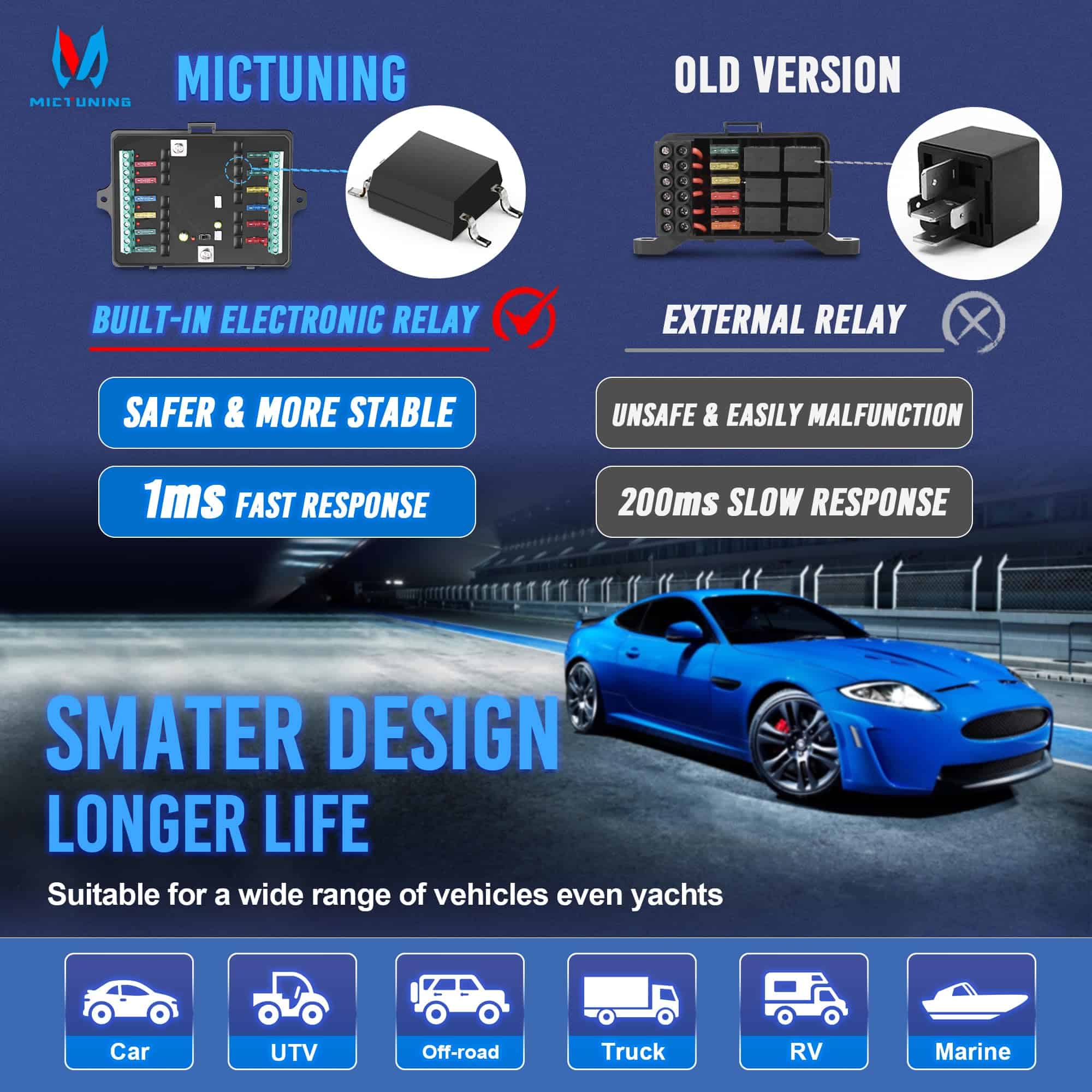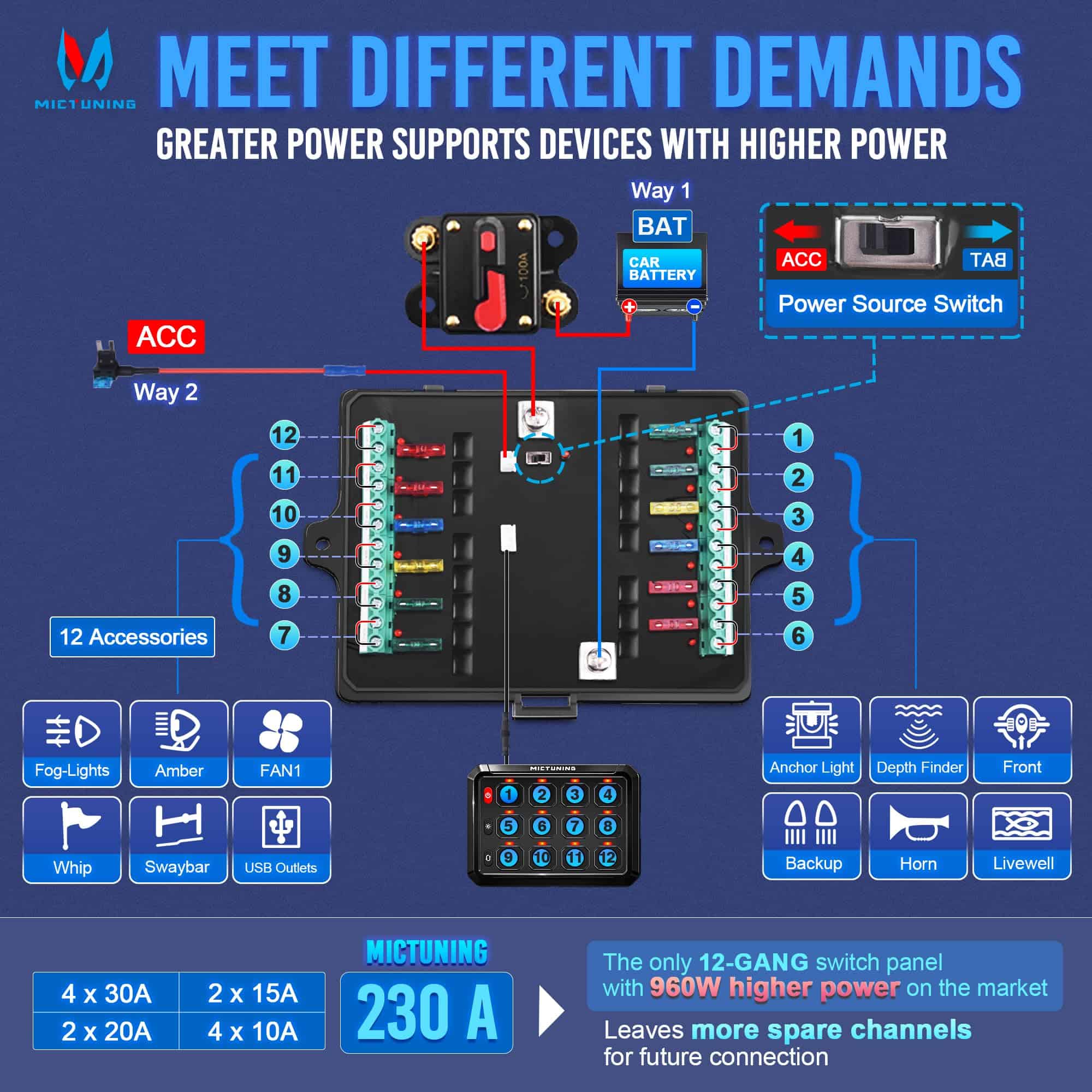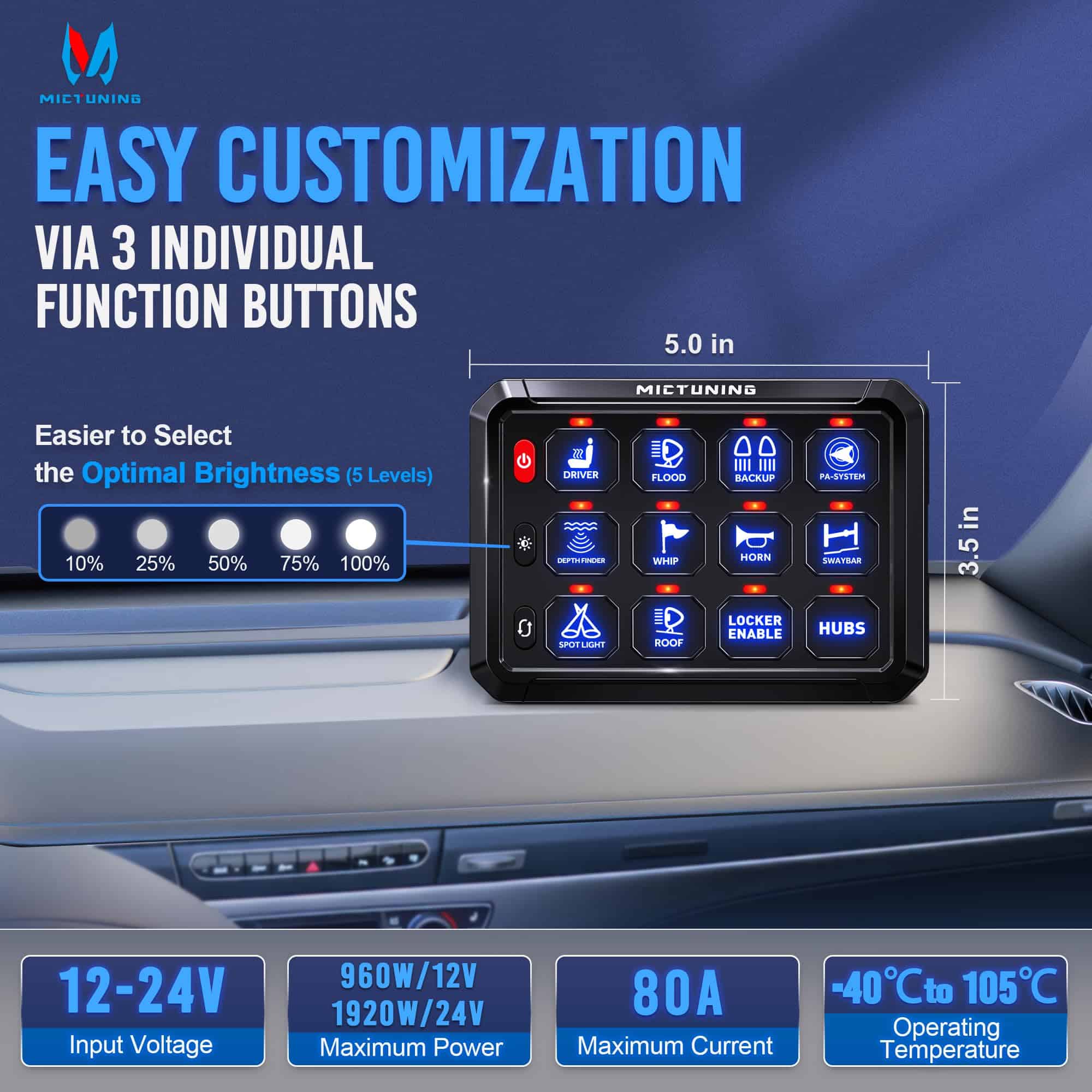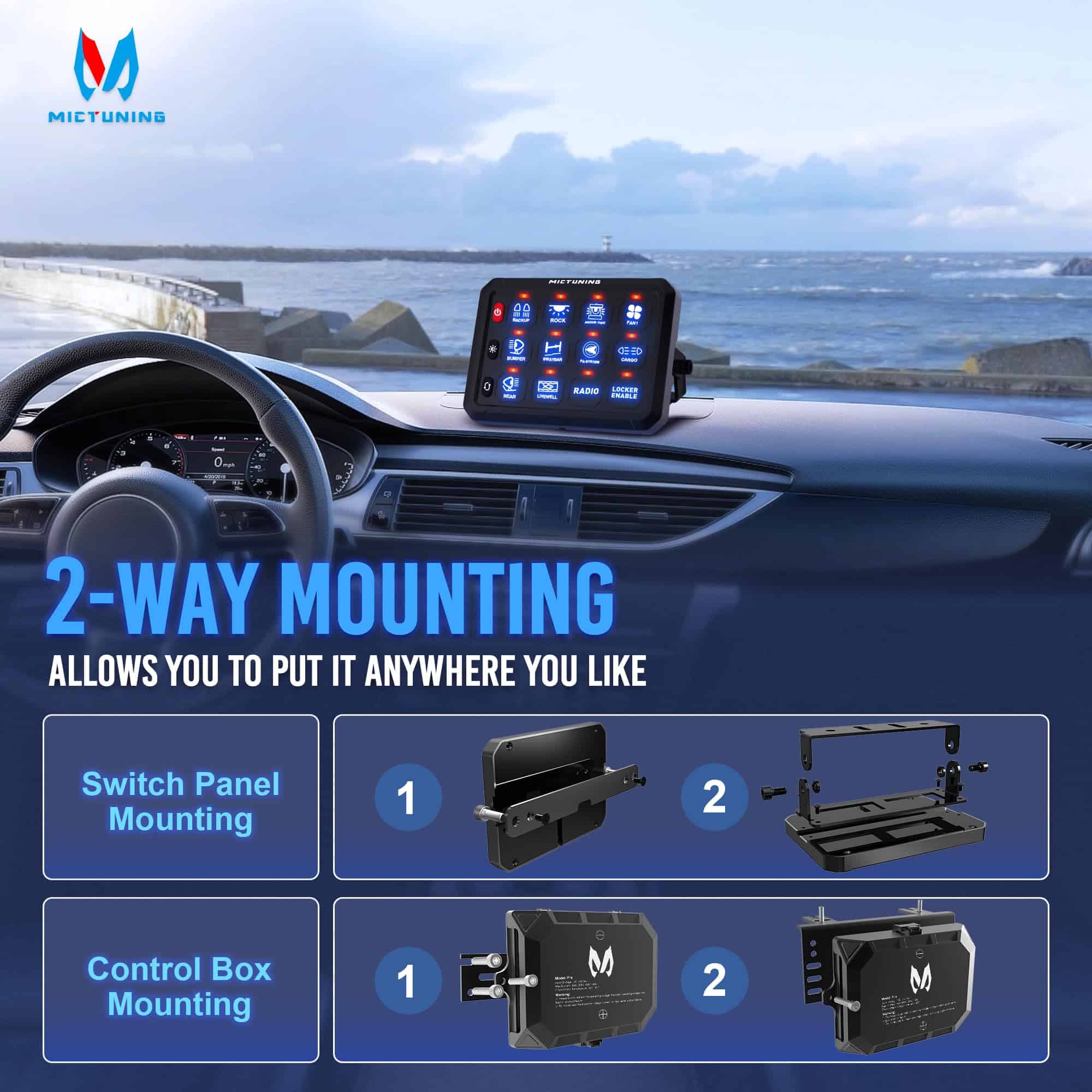 Panel de interruptores MICTUNING 12 Gang P1S-B12 Azul 80A
