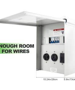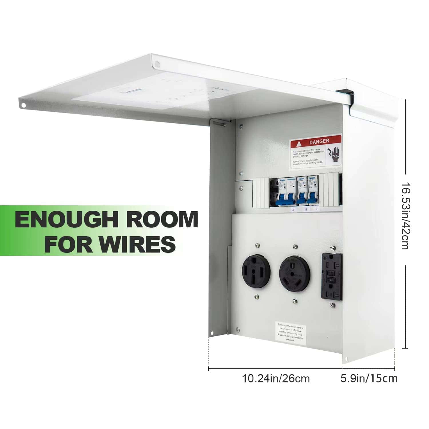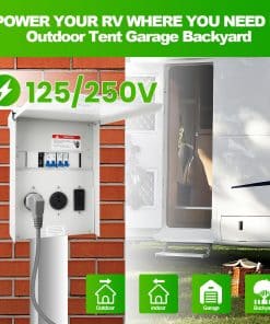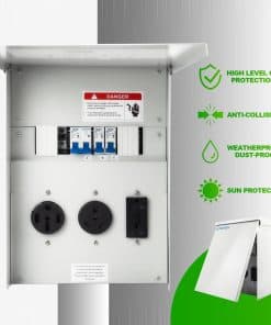 Este panel de salida de energía para RV cuenta con un receptáculo de 50 amperios, 30 amperios y 20 amperios, cada uno protegido por un interruptor automático. Tanto los receptáculos como los interruptores automáticos tienen certificación UL para una mayor seguridad. En caso de no estar satisfecho con el producto, Kinchoix ofrece garantía de calidad y un excelente servicio al cliente, con la garantía de reemplazar el producto o reembolsar el pedido. ¡Hazte con tu panel de salida de energía temporal Kinchoix y obtén la energía que necesitas de forma segura y confiable!