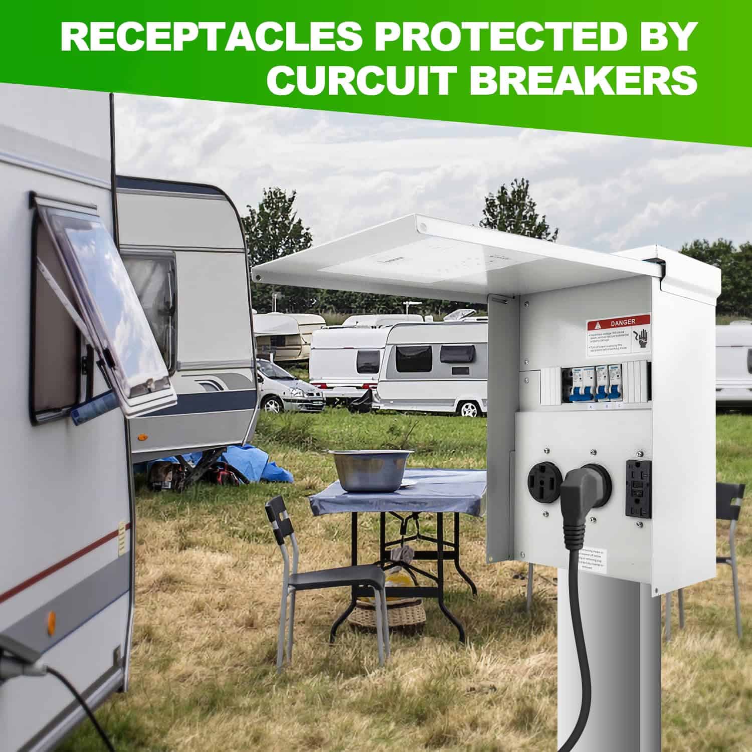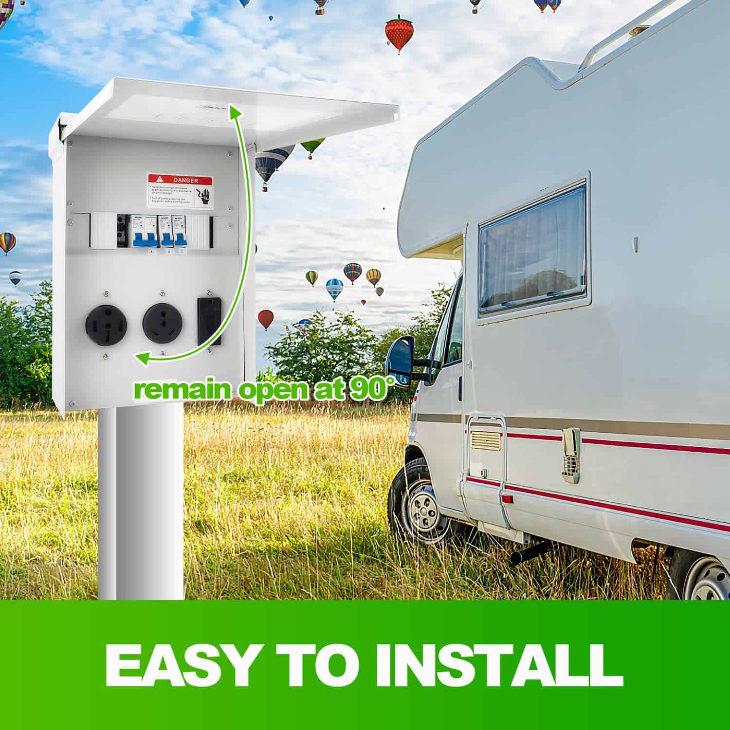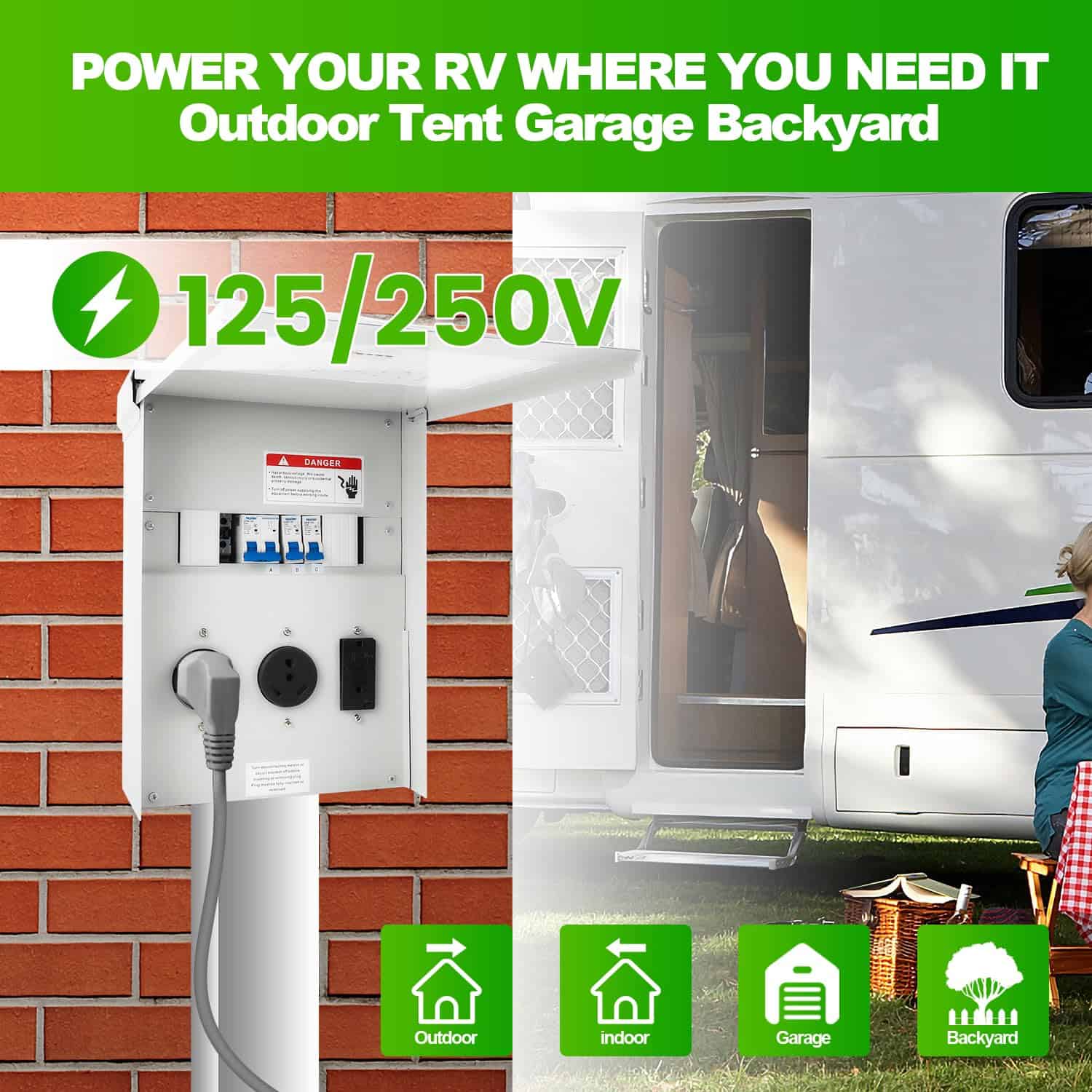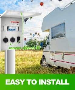 El panel de salida de energía temporal Kinchoix es la solución perfecta para obtener energía temporal en sitios de construcción y parques para RV. Construido con acero laminado en frío de alta resistencia, este panel de salida de energía para RV es resistente y duradero. Su carcasa está pulverizada en todo el cuerpo para resistir la corrosión y bloquear eficazmente el paso del agua, la lluvia, el polvo, la nieve, el aceite y los rayos UV.