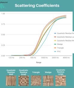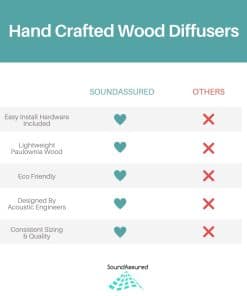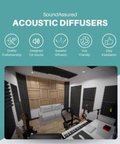 3. ¡Obtén un sonido de calidad profesional! Nuestros paneles acústicos están hechos para la difusión del sonido, no para la absorción del sonido. Los paneles de absorción tendrán un efecto amortiguador mientras que los paneles de difusión mantendrán un sonido más vivo. Los difusores se utilizan a menudo en combinación con paneles absorbentes de sonido y trampas de bajos para obtener el sonido deseado en tu habitación.