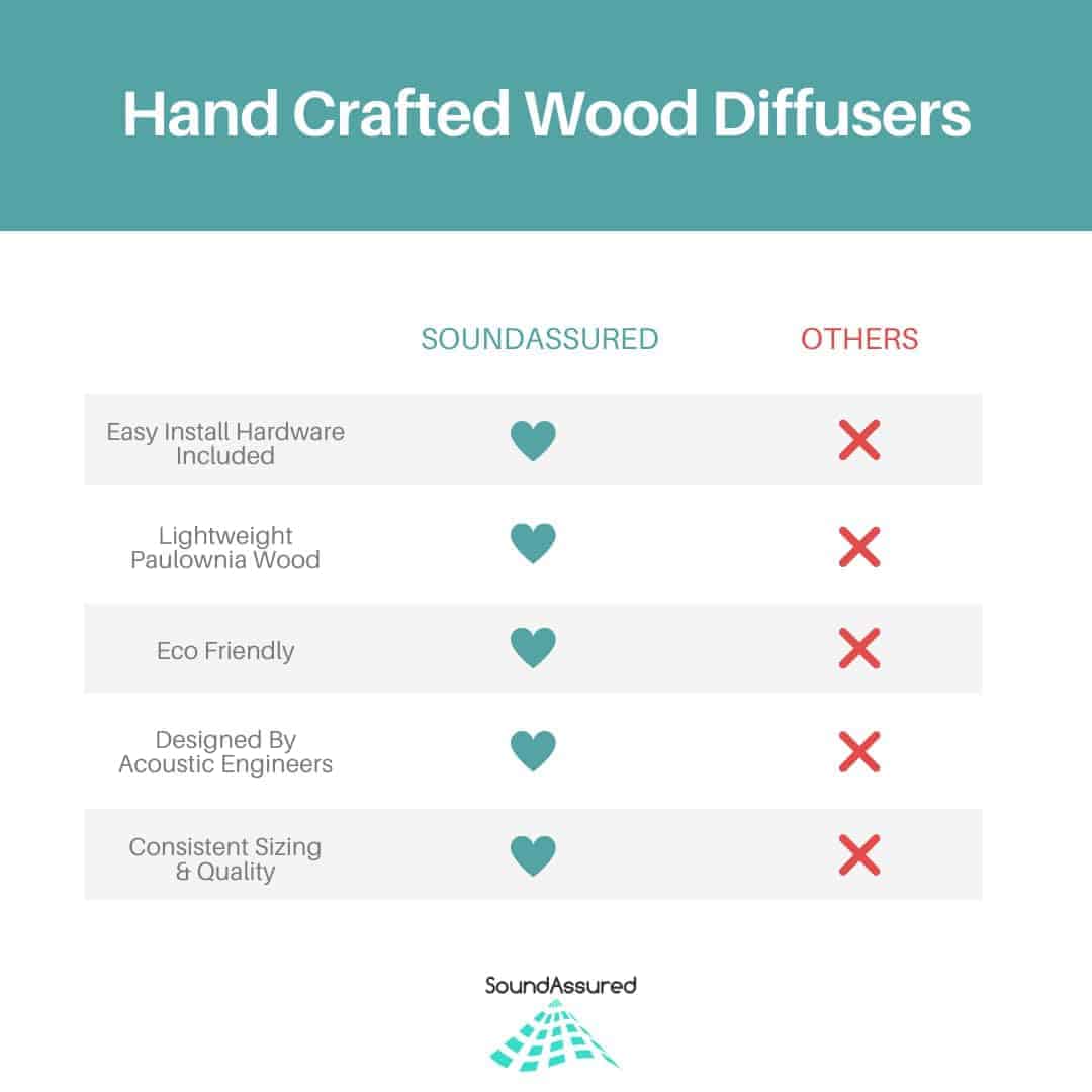 2. ¡Disminuye los ecos! Los difusores de sonido se utilizan para tratar ecos y reflexiones. A diferencia de los paneles de espuma acústica que están diseñados para absorber ondas sonoras a diferentes frecuencias, los difusores acústicos están diseñados para dispersar las ondas sonoras.