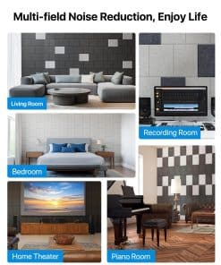 7. Amplia Aplicación: Los paneles acústicos son adecuados para varios espacios, incluidos hogares, oficinas, estudios de grabación, transmisiones en vivo y salas de conferencias; mejoran el ambiente acústico y mejoran la calidad y comodidad del sonido.