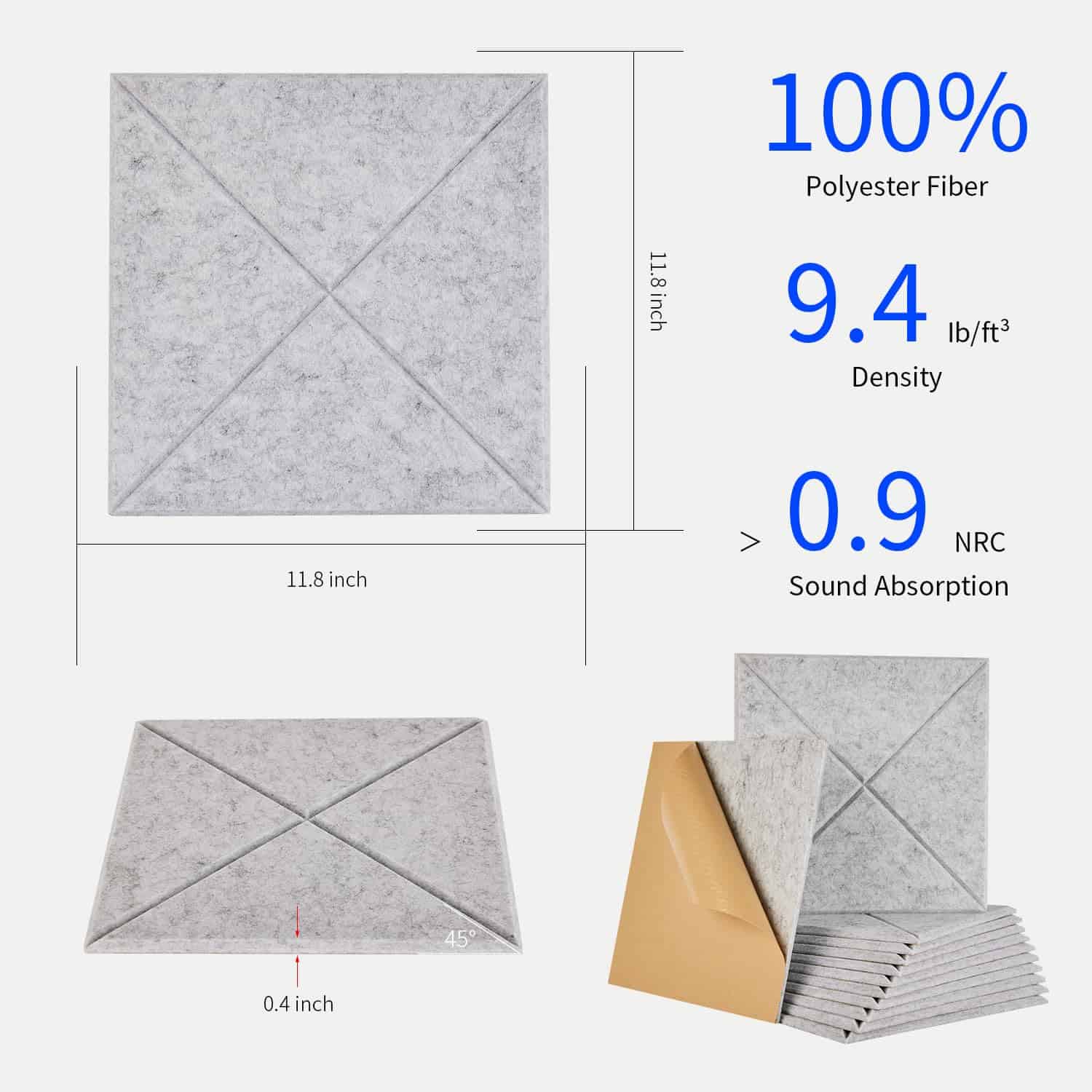 Paneles Acústicos Autoadhesivos, 12 Pcs 12″ – Densidad