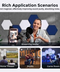 1. Disfrute del Sonido que Desea Con los paneles acústicos, puede reducir el eco, el ruido y las reverberaciones en su espacio. Los paneles le ayudan a eliminar el sonido no deseado y mejorar la calidad del sonido que desea escuchar y puede oír cada detalle del sonido claramente. Los paneles también bloquean el ruido de frecuencia media/alta y tienen aislamiento de sonido auxiliar. Tenga en cuenta que los paneles acústicos necesitan estar directamente expuestos al campo de sonido.