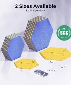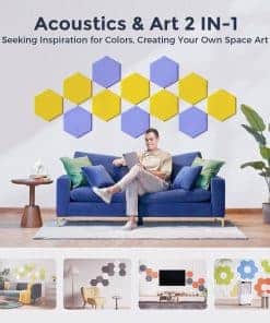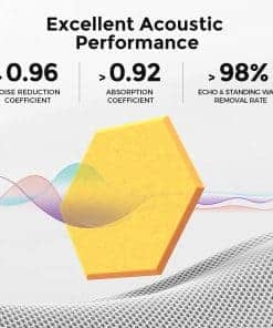 4. Un Producto Seguro y Hermoso: Los paneles de amortiguación acústica han pasado la CERTIFICACIÓN SGS, solo utilizamos materiales de poliéster crudo de alta calidad, no residuos reciclados, para hacer el producto insonorizante seguro y respetuoso con el medio ambiente. Nuestros paneles de pared hexagonales no tienen olor, toxinas ni formaldehído, por lo que son adecuados para niños y mascotas. Los azulejos acústicos tienen una gran consistencia de color, estabilidad y atractivo estético. Mejorarán el aspecto y la sensación de tu espacio.