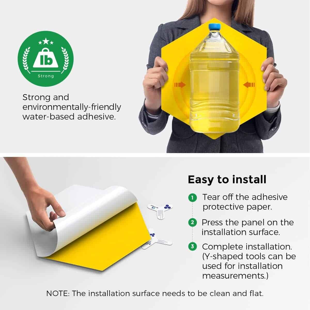 3. Instalación Fácil: Los paneles acústicos hexagonales tienen un fuerte respaldo autoadhesivo que puede pegarse a cualquier superficie limpia y plana. Puedes instalar los paneles de pared acústicos en solo 10 minutos y producir diseños creativos con nuestra herramienta de espacio de instalación incluida en cada paquete. Nuestro adhesivo para paneles pasó la prueba de tracción final de 88.2 onzas. Esto significa que los paneles de pared insonorizantes pueden lograr una estabilidad de instalación a largo plazo y fiable.