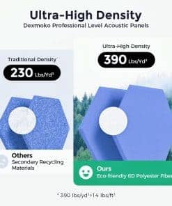 2. La Diferencia de la 2nda Generación: Los paneles de espuma para insonorizar de 2nda generación utilizan nuestra exclusiva tecnología patentada de PUNZADO CON AGUJA AL VACÍO, que hace que los paneles sean más densos y duraderos que la generación anterior. Nuestros paneles de espuma acústica tienen una alta densidad de 390 lbs/yd , un 30% más alta que productos similares. Esto significa que nuestros paneles tienen un mejor rendimiento de absorción e insonorización del sonido y una textura más suave.