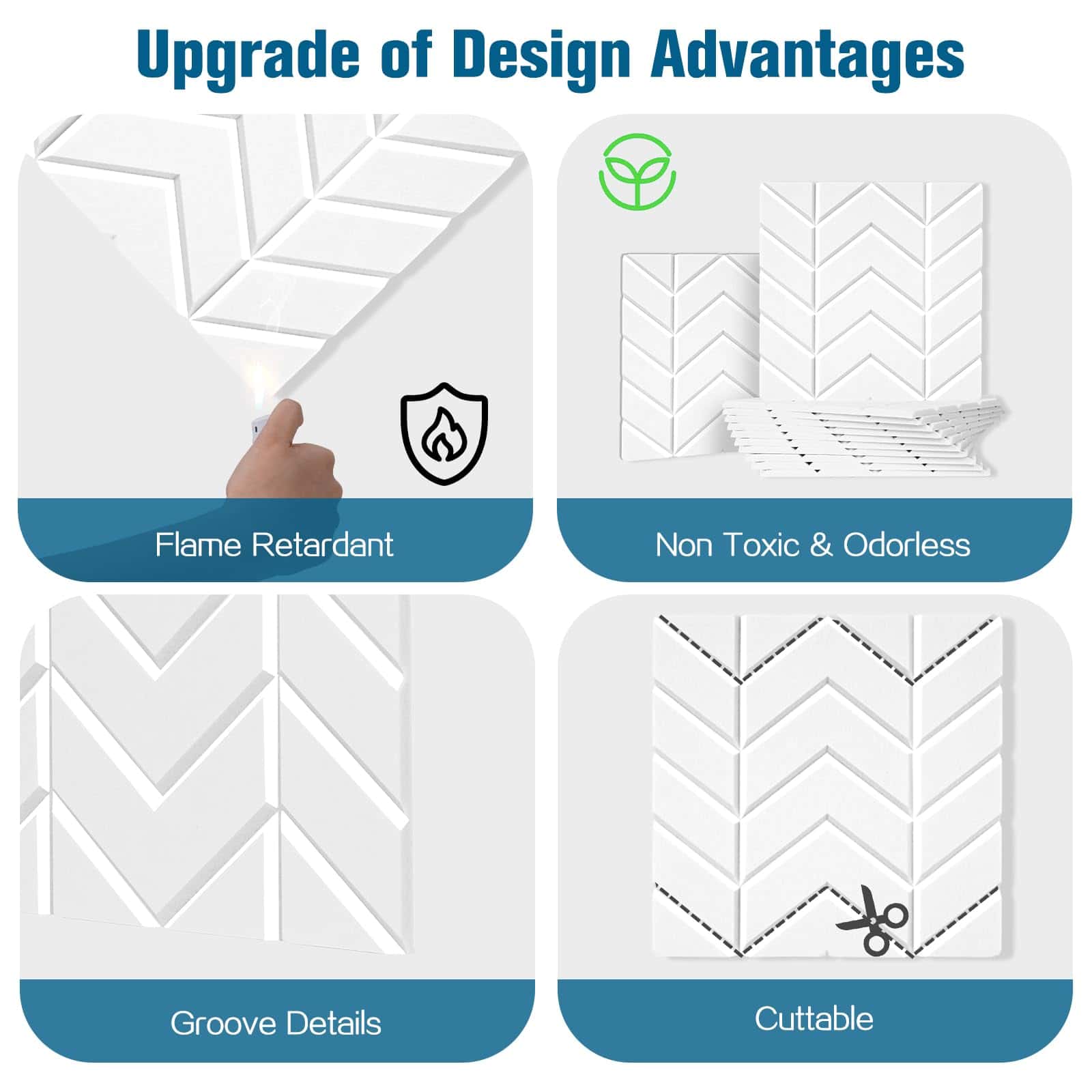 Los paneles están hechos de materiales ecológicos y de alta calidad, siendo 100% de fibra de poliéster sin olor ni sustancias nocivas. Con un coeficiente de reducción de ruido de 0.92 y una densidad de 9.7 lb/pie, estos paneles ofrecen un rendimiento superior en absorción de sonido, reducción de ruido, cancelación de eco y reverberación.