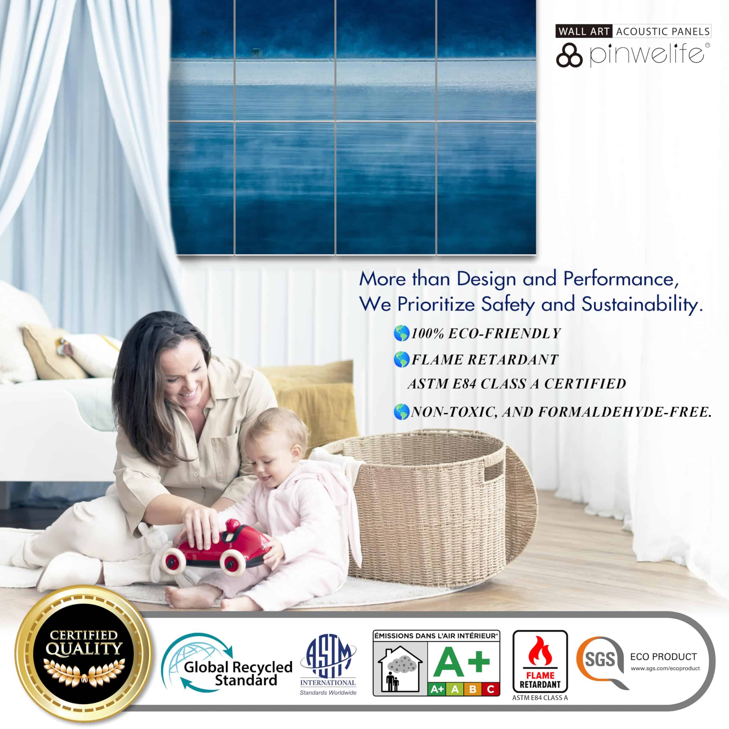 1. Material de Calidad: Nuestros paneles acústicos están fabricados con materiales de poliéster de alta calidad, garantizando durabilidad y longevidad. A diferencia de alternativas más baratas, nuestros paneles utilizan hilos de poliéster nativos altamente retardantes de llama, ofreciendo una eficacia superior en retardancia de llama. 2. Absorción de Sonido: Diseñados para una absorción de sonido excepcional, nuestros paneles elevan la calidad acústica de cualquier espacio con un NRC máximo de 0.95. Información detallada de las pruebas se proporciona en la documentación adjunta. 3. Densidad: Con una densidad de 2.3 kg/m², nuestros paneles ofrecen una reducción de ruido efectiva manteniendo un atractivo estético. 4. Normas de Seguridad: Nuestros productos cumplen con los estándares internacionales de retardancia de llama, logrando la calificación más alta Clase A (ASTM E84 de EE. UU.), garantizando seguridad sin compromisos. 5. Responsabilidad Ambiental: Nuestros paneles son libres de COV y poseen certificaciones no tóxicas (Clase A+ para emisiones en el aire interior), haciéndolos respetuosos con el medio ambiente y adecuados para diversos entornos. Todas las certificaciones son accesibles a través de la documentación proporcionada. 6. Elegancia Artística: Presentando impresiones de alta resolución de obras maestras de artistas famosos como Van Gogh, Claude Monet, Paul Gauguin y Katsushika Hokusai, nuestros paneles utilizan Impresión por Sublimación de alto costo para patrones vibrantes y resistentes a la decoloración. 7. Versatilidad: Ideales para estudios de grabación, cines en casa, oficinas y cualquier espacio donde la calidad del sonido sea primordial, nuestros paneles mejoran la funcionalidad sin comprometer el atractivo estético. 8. Instalación Sencilla: Cada compra incluye 40 piezas de masilla adhesiva nano (40mmx40mmx1mm), facilitando la instalación sin la necesidad de herramientas adicionales o asistencia profesional. 9. Atractivo Estético: Con obras de arte de pintores celebrados, nuestros paneles infunden a las habitaciones con sofisticación artística, fusionando sin problemas estilo y funcionalidad. 10. Soporte al Cliente: Nos enorgullece ofrecer un servicio al cliente excepcional, siempre disponibles para abordar cualquier consulta o inquietud sobre nuestro producto.