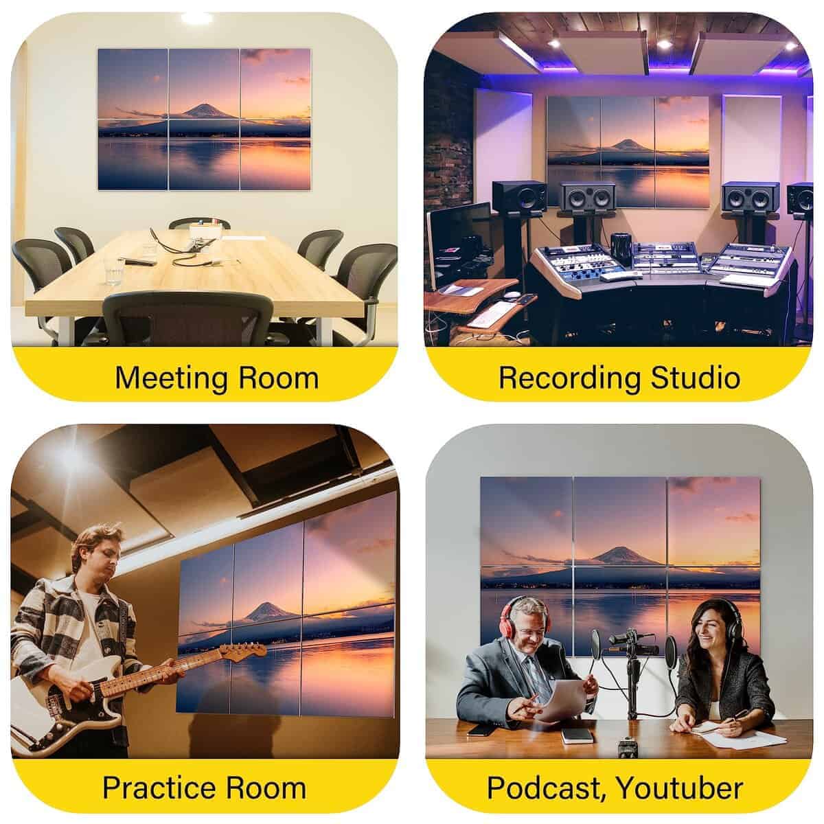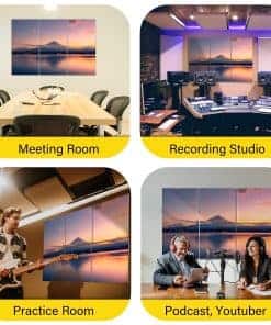 2. «Diseño Elegante que se Fusiona con la Funcionalidad» – Nuestros paneles acústicos de arte no solo son hermosos, sino también seguros y ligeros. El elegante diseño agrega un toque de sofisticación a cualquier espacio, por lo que es perfecto para el hogar, la oficina, el estudio de grabación, KTV o el cine en casa. NRC: 0.95.