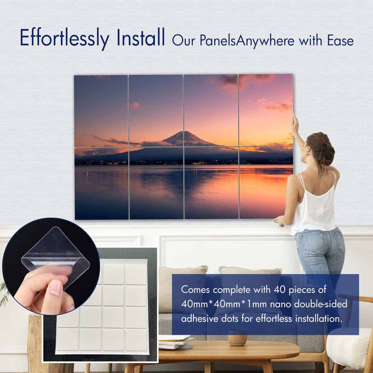 4. «Instalación Sencilla para tu Comodidad» – Nuestro producto viene con nano partículas autoadhesivas de doble cara para una instalación sencilla. Ten en cuenta que no es adecuado para paredes rugosas o desiguales.