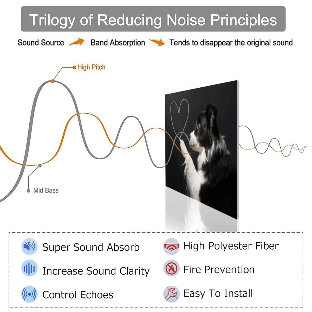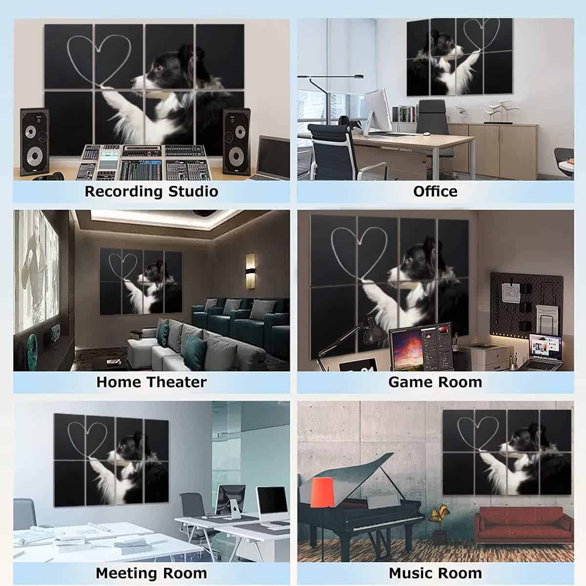 4. USO AMPLIO – Los paneles acústicos están hechos de fibra de poliéster. Es mejor que la espuma absorbente de sonido en todos los aspectos. Use los paneles acústicos en habitaciones, salas de cine en casa, oficinas, escuelas y auditorios para lograr un espacio tranquilo.