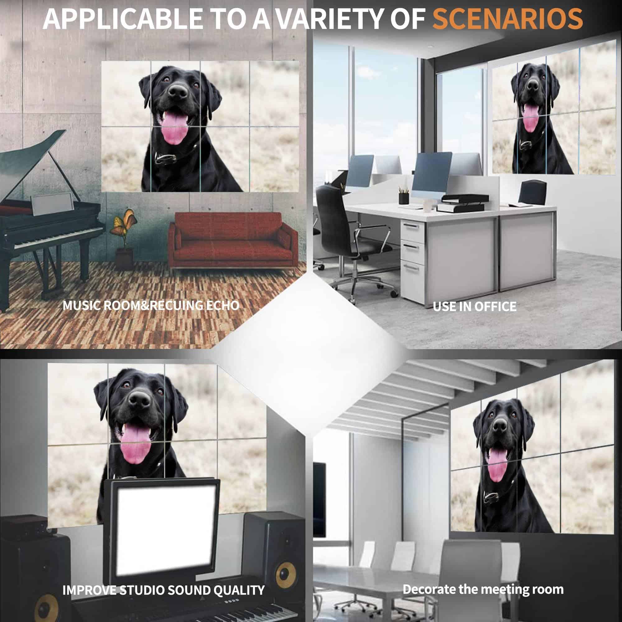 ¡Una Nueva Forma de Decorar Tu Espacio! Panel acústico decorativo Procesamiento acústico profesional para crear un hermoso entorno de grabación. Los paneles de pared de alta calidad aislantes del sonido combinan buenos efectos de absorción de sonido con exhibición de arte pintura, proporcionando un cómodo efecto visual y mejorando la efectividad del aislamiento acústico de la habitación. Los paneles decorativos absorbentes de sonido pueden usarse como paredes y techos en diversos lugares, como teatros, cines, estudios de grabación, gimnasios, metros, estaciones, oficinas, escuelas, etc. Pueden reducir efectivamente el eco y el ruido interior y mejorar la calidad del sonido. Al mismo tiempo, también se utilizan para la decoración, haciendo que tu habitación sea más bella y práctica. Ventajas: – Absorción de Sonido Hecho de poliéster, es especialmente adecuado para reducir el ruido y el eco, mejorando así tu entorno acústico. -Instalación Autoadhesiva La instalación es sencilla gracias al fuerte respaldo adhesivo que se adhiere fácilmente a una variedad de superficies lisas sin dañar la pared. -Decoración Ofrece una variedad de estilos y patrones para elegir, diseño moderno, elegante y hermoso. -Ignífugo Se añade una fórmula retardante de llama al panel de aislamiento acústico para mantenernos alejados del peligro de incendio. -Respetuoso con el Medio Ambiente Material de fibra de poliéster virgen de alta calidad, inodoro y libre de contaminación, saludable y respetuoso con el medio ambiente. Especificaciones: Tamaño: CANT: Material: Fácil de Instalar: Pegamento Nano