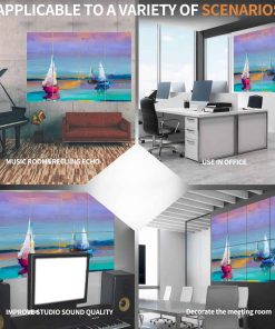 ¡Una Nueva Forma de Decorar su Espacio! Panel acústico decorativo Procesamiento acústico profesional para crear un hermoso entorno de grabación. Los paneles de pared insonorizantes de alta calidad combinan buenos efectos de absorción de sonido con exhibición de arte de pintura, llevando a cabo un cómodo efecto visual y mejorando el efecto de aislamiento acústico de la habitación. Los paneles decorativos absorbentes de sonido se pueden utilizar como paredes y techos en diversos lugares, como teatros, cines, estudios de grabación, gimnasios, metros, estaciones, oficinas, escuelas, etc. Pueden reducir eficazmente el eco y el ruido interior y mejorar la calidad del sonido. Al mismo tiempo, también se utiliza para la decoración, haciendo que su habitación sea más hermosa y práctica. Ventaja: – Absorción de Sonido Hecho de poliéster, es especialmente adecuado para reducir el ruido y el eco, ¡mejorando su entorno acústico! -Instalación Autoadhesiva La instalación es facil gracias al fuerte adhesivo que se adhiere fácilmente a una variedad de superficies lisas sin dañar la pared. -Decoración Proporcionar una variedad de estilos de patrones para elegir, diseño moderno, moderno y hermoso. -Ignífugo Se añade una fórmula retardante de llama al tablero de aislamiento acústico para mantenernos alejados del peligro del incendio. -Amigable con el Medio Ambiente Material de fibra de poliéster virgen de alta calidad, inodoro y sin contaminación, sano y respetuoso con el medio ambiente. Especificaciones: Tamaño: 48» 32» 0.4» Cantidad: 8 piezas Material: Fibra de poliéster Fácil de Instalar: Cinta adhesiva de doble cara incluida
