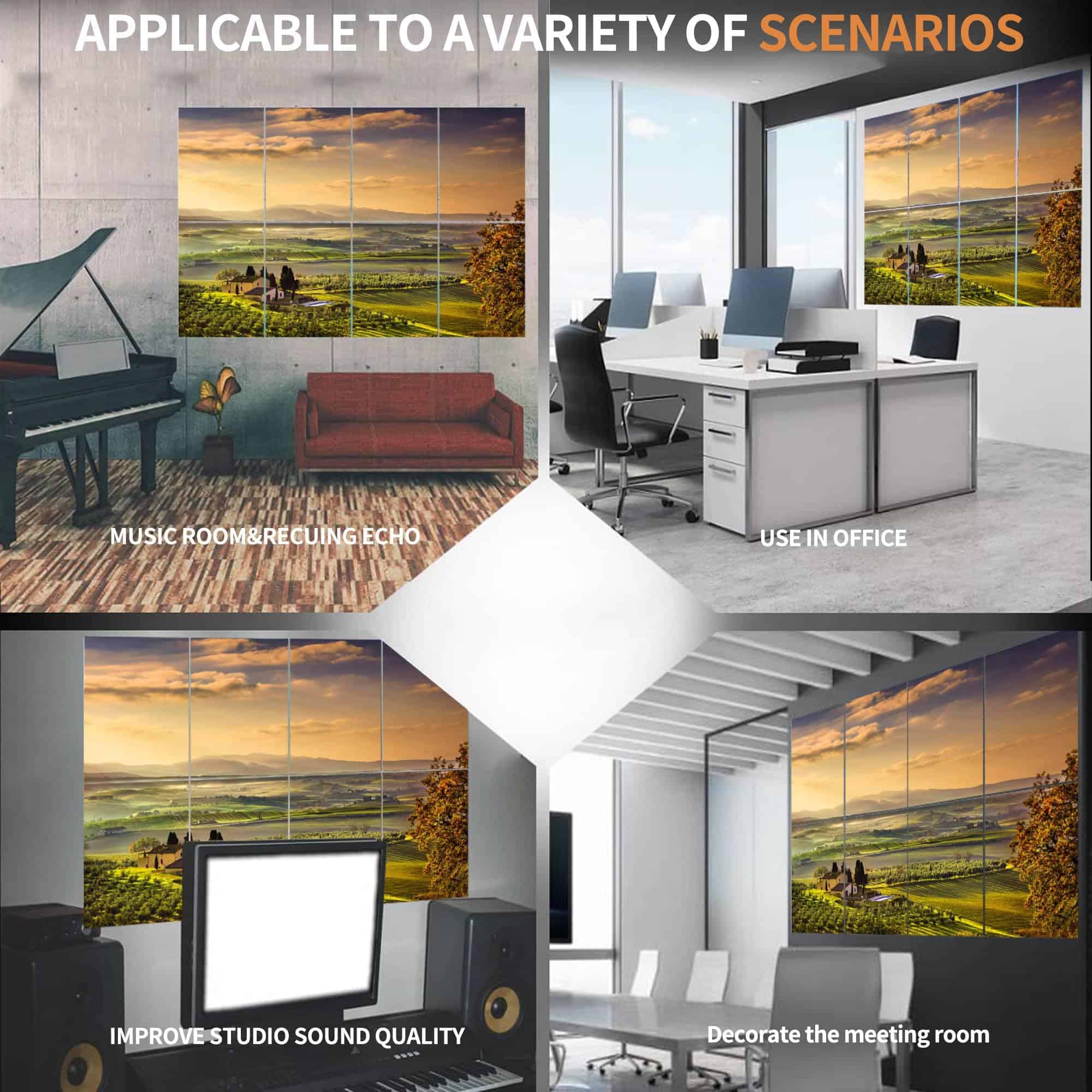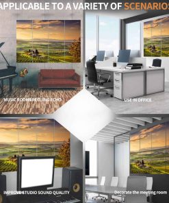 ¡Una Nueva Forma de Decorar Su Espacio! Panel acústico decorativo Procesamiento acústico profesional para crear un hermoso entorno de grabación. Los paneles de pared aislantes de sonido de alta calidad combinan buenos efectos de absorción de sonido con exhibición de arte de pintura, brindando un efecto visual cómodo y mejorando el efecto de aislamiento acústico de la habitación. Los paneles acústicos decorativos se pueden utilizar como paredes y techos en varios lugares, como teatros, cines, estudios de grabación, gimnasios, metros, estaciones, oficinas, escuelas, etc. Pueden reducir eficazmente el eco y el ruido interior y mejorar la calidad del sonido. Al mismo tiempo, también se utiliza para decoración, haciendo que su habitación sea más hermosa y práctica. Ventaja: – Absorción de Sonido Hecho de poliéster, es especialmente adecuado para reducir el ruido y el eco, ¡mejorando su entorno acústico! – Instalación Autoadhesiva La instalación es muy sencilla gracias al fuerte respaldo adhesivo que se adhiere fácilmente a una variedad de superficies lisas sin dañar la pared. – Decoración Proporciona una variedad de estilos de patrones para elegir, diseño moderno, elegante y hermoso. – Ignífugo Se añade una fórmula retardante de llama a la placa aislante acústica para mantenernos alejados del peligro del fuego. – Respetuoso con el Medio Ambiente Material de fibra de poliéster de alta calidad, sin olores y libre de contaminación, saludable y respetuoso con el medio ambiente. Especificaciones: Tamaño: 48» 32» 0.4» Cantidad: 8pcs Material: Fibra de Poliéster Fácil de Instalar: Cinta de doble cara incluida
