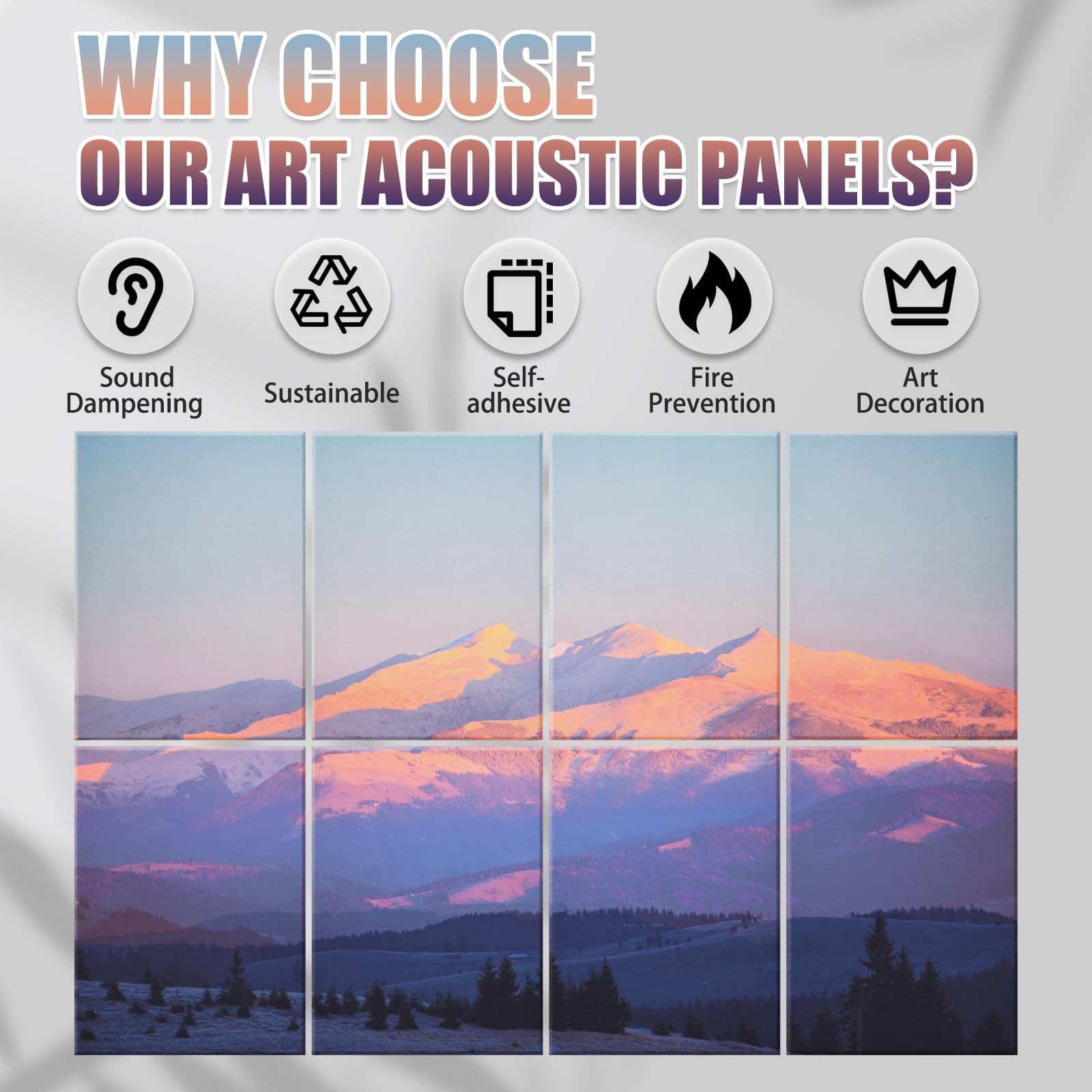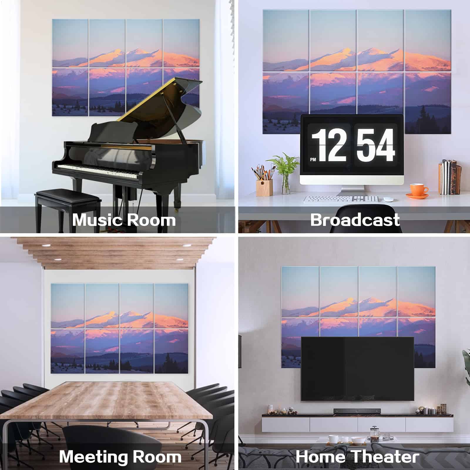 Paneles Acústicos de Arte, Acolchado a Prueba de Sonido, 8 Paquete de Paneles Acústicos Decorativos, 48″ x 32″ Paneles Absorbentes de Sonido Autoadhesivos