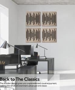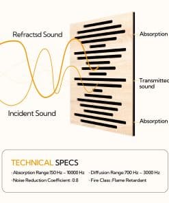 La difusión de sonido creada por estos paneles permite una distribución más uniforme del sonido, lo que resulta en una experiencia auditiva más clara y equilibrada. Su diseño clásico de madera se adapta a cualquier estilo de decoración interior, lo que los hace ideales para estudios de grabación, salas de estar, cines en casa y más.