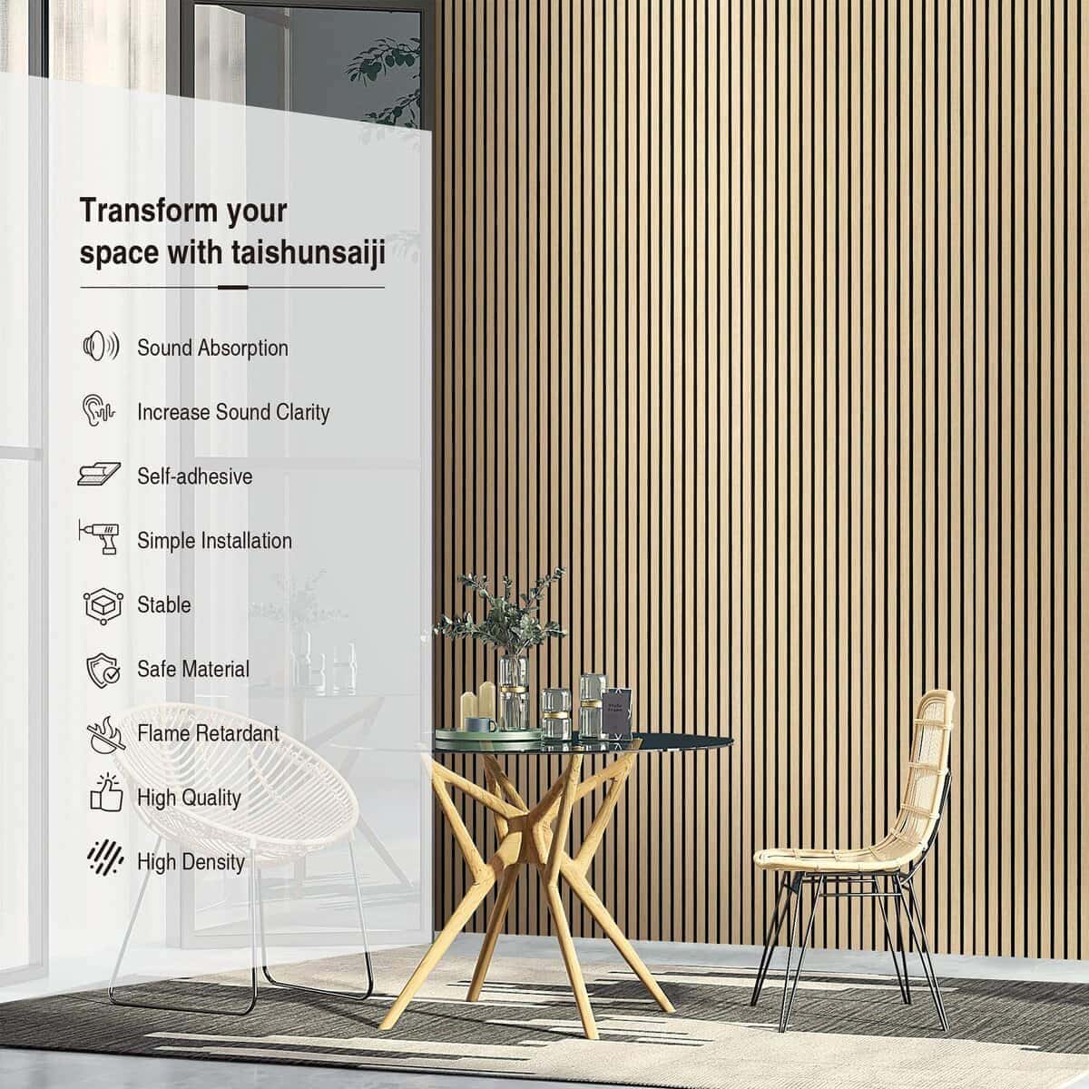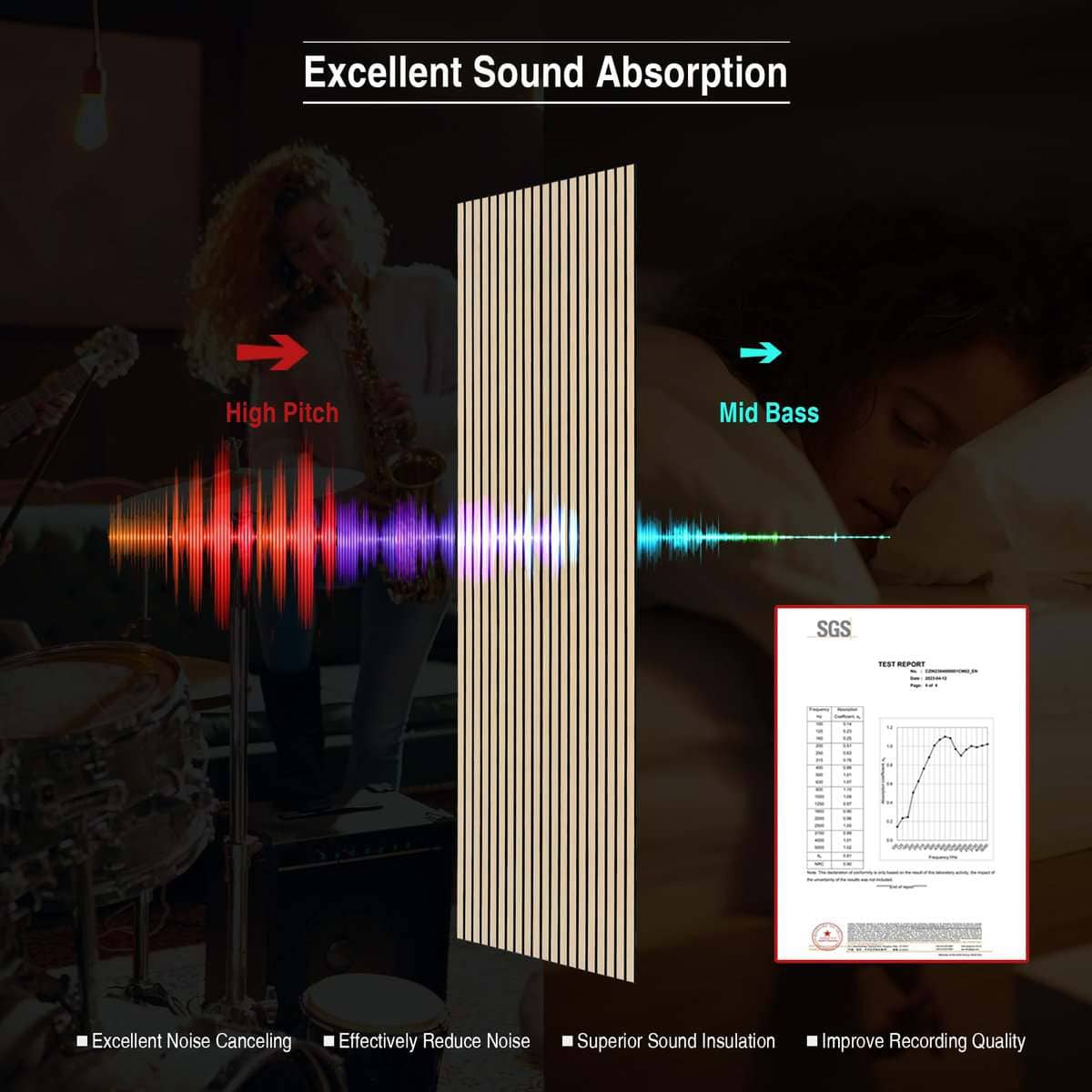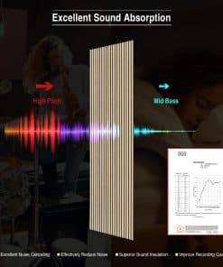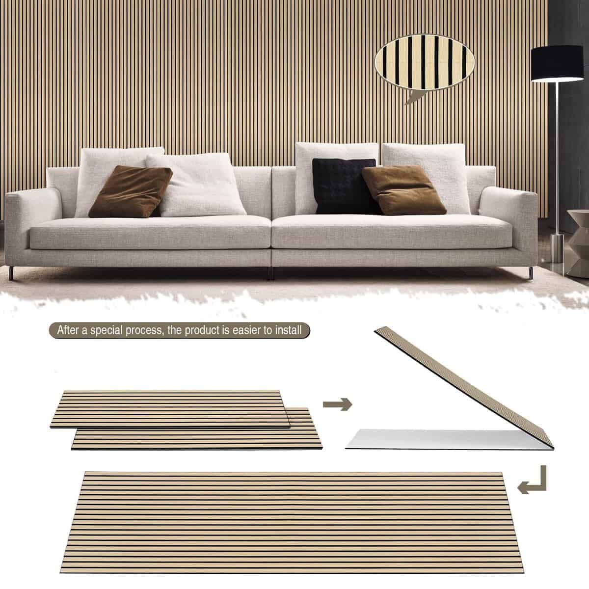 2. Rendimiento acústico superior: Diseñados para optimizar el aislamiento acústico, estos paneles de pared acústicos de madera reducen eficazmente el ruido y mejoran la calidad del sonido. Ideales para salas de juegos, estudios o cualquier decoración interior donde la cancelación de ruido es una prioridad.