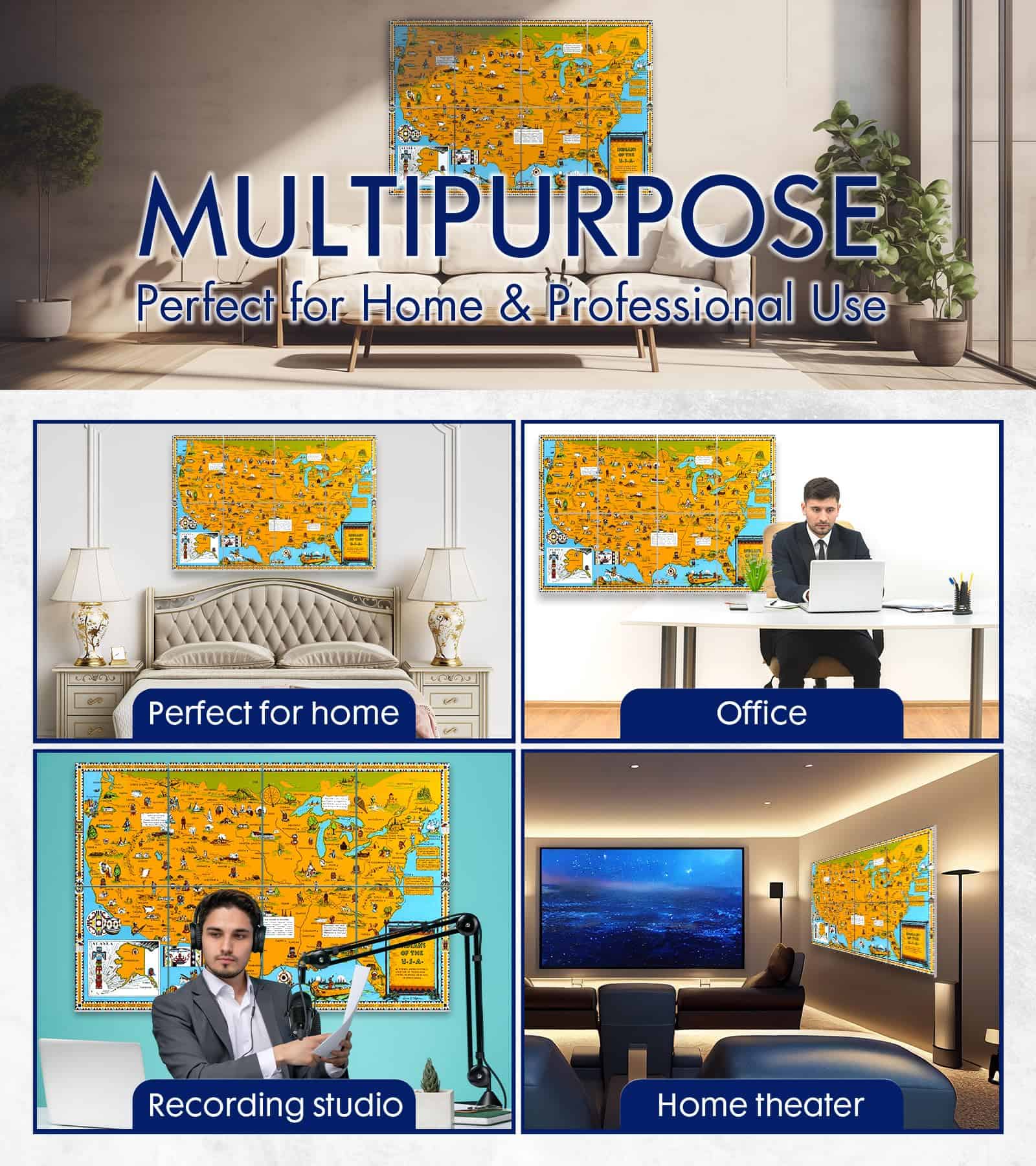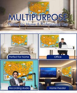 «Diseño Elegante con Funcionalidad» – Nuestros paneles acústicos de arte no solo son hermosos, sino también seguros y ligeros. El elegante diseño añade un toque de sofisticación a cualquier espacio, haciéndolo perfecto para hogar, oficina, estudio de grabación, KTV o teatro en casa. NRC: 0.95. «Eco-Friendly y Seguro para Todos» – Hechos de 100% poliéster de alta densidad (2.3 KGm) con hilos de poliéster nativos de alta resistencia al fuego, NO el habitual proceso más barato con aditivos empapados (baja eficacia ignífuga), nuestros paneles son reciclables y han pasado las certificaciones de resistencia al fuego (Clase A, ASTM E84 de EE. UU.) y no tóxicas (Emisiones en aire interior, Clase A+). Utilizando la impresión por sublimación de alto costo para garantizar patrones vibrantes y resistentes a la decoloración, lo que los hace más duraderos y seguros para todos. «Instalación Fácil para tu Comodidad» – Nuestro producto viene con partículas nano adhesivas de doble cara para una fácil instalación. Por favor, ten en cuenta que no es adecuado para paredes rugosas o irregulares. «¡Satisfacción Garantizada!» – Ofrecemos un servicio al cliente profesional las 24 horas y una política de devolución que garantiza tu satisfacción. Si no estás contento con nuestro producto, nuestros ingenieros acústicos analizarán tu situación específica y trabajarán contigo para encontrar una solución. Si no podemos resolver el problema, te reembolsaremos el 100%.