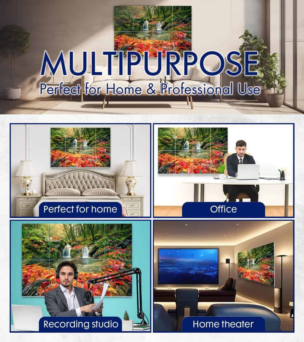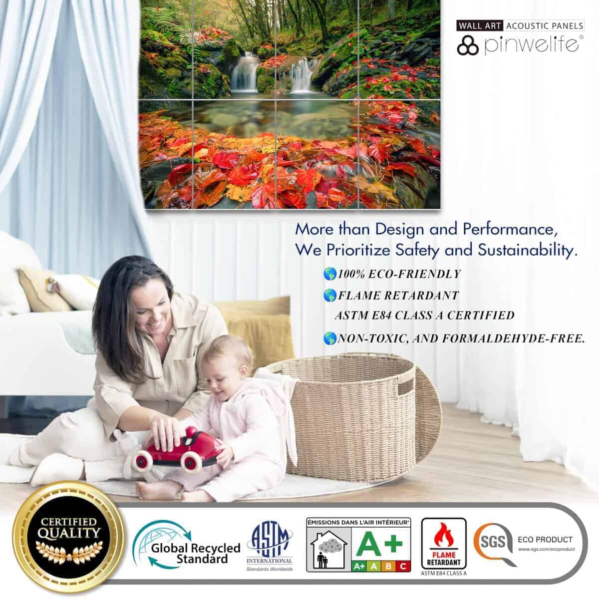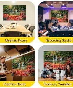 «Experimenta un Sonido Cristalino» – Los Paneles Acústicos Pinwelife han sido rigurosamente probados y certificados para una máxima absorción de sonido, reduciendo ecos y reverberaciones para mejorar la calidad del sonido y la claridad del habla. Perfecto para espacios con altos requerimientos acústicos. «Diseño Elegante y Funcional» – Nuestros paneles acústicos de arte no solo son hermosos, sino también seguros y ligeros. El diseño elegante añade un toque de sofisticación a cualquier espacio, haciéndolo perfecto para el hogar, la oficina, el estudio de grabación, el KTV o el cine en casa. NRC: 0.95. «Eco-Amigable y Seguro para Todos» – Hecho de 100% poliéster de alta densidad (2,3 KGm ) con hilos de poliéster nativos de alta resistencia al fuego, NO es el proceso habitual más barato empapado en aditivos (pobre efecto retardante de llama, nuestros paneles son reciclables y han pasado las certificaciones retardantes de llama (Clase A, ASTM E84 de EE.UU) y no tóxicas (Emisiones en el aire interior, Clase A+). Utilizando impresión por Sublimación de alto costo para garantizar patrones vibrantes y resistentes a la decoloración, haciéndolo más duradero y seguro para todos. «Fácil Instalación para tu Comodidad» – Nuestro producto viene con partículas nano adhesivas de doble cara para una instalación fácil. Ten en cuenta que no es adecuado para paredes rugosas o irregulares. «Satisfacción Garantizada» – Ofrecemos un servicio de atención al cliente profesional las 24 horas y una política de devolución que garantiza tu satisfacción. Si no estás contento con nuestro producto, nuestros ingenieros acústicos analizarán tu situación específica y trabajarán contigo para encontrar una solución. Si no podemos resolver el problema, te reembolsaremos el 100%.