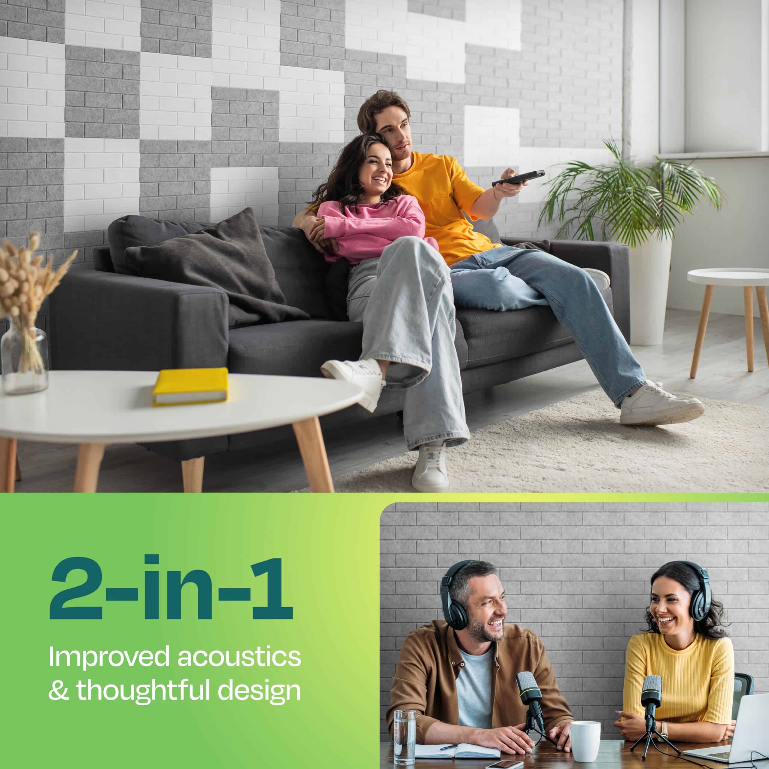 3. DISEÑO MODERNO DE LADRILLO: Nuestros paneles insonorizantes para paredes presentan un patrón de ladrillo único que añade un toque moderno a cualquier habitación. Disponibles en varios colores, le ayudan a diseñar espacios hermosos y de reducción de ruido que mejoran el aspecto y la funcionalidad de su decoración.