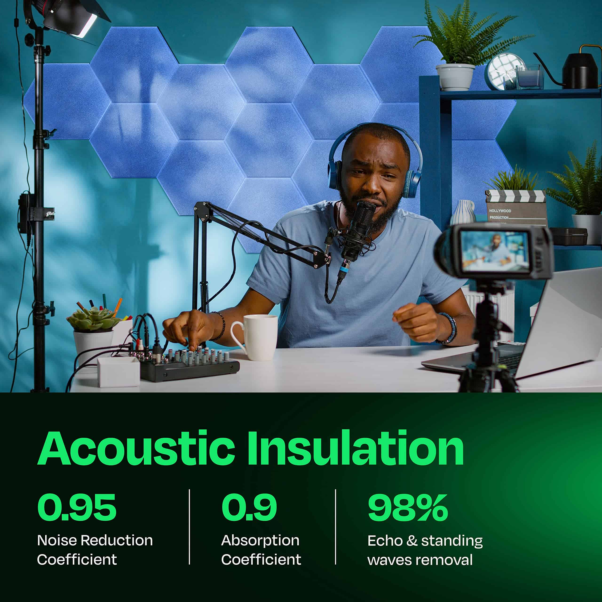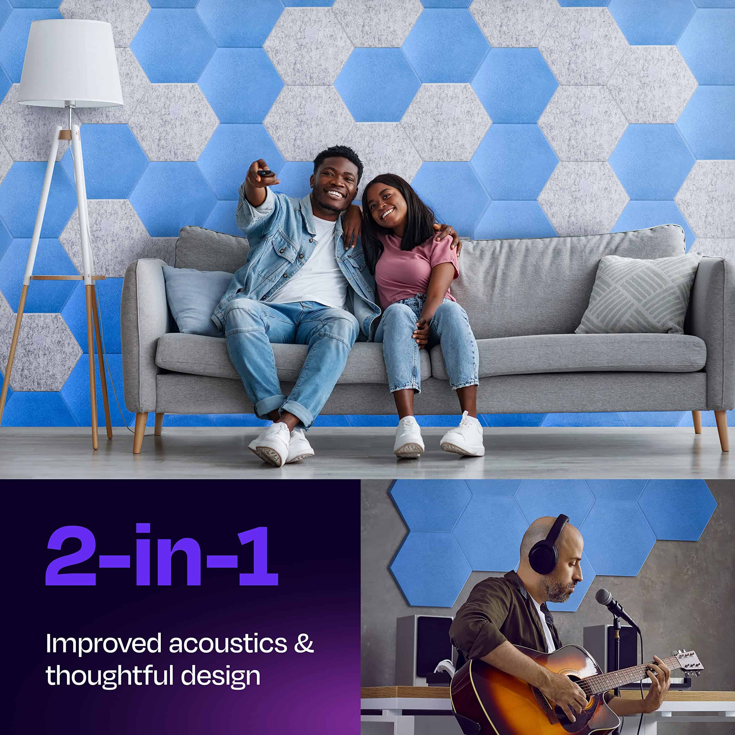 Mejora la calidad del sonido y reduce los ecos y reverberaciones en tu casa, oficina, estudio de podcast, sala de conferencias y más con los Paneles Acústicos Ekkogo. Estos paneles absorbentes de sonido son ideales para mantener los ruidos no deseados al mínimo. Los paneles son fáciles de instalar y se pueden utilizar en una variedad de espacios, como dormitorios, salas de estar, oficinas en casa y salas de blog. Son una alternativa atractiva a los antiguos paneles de espuma aislante de sonido. Cada panel está cortado con precisión de paneles de poliéster de alta densidad, lo que garantiza una reducción efectiva del ruido y una mejor calidad de sonido en la habitación. Además, los paneles son amigables con el medio ambiente, ya que contienen material reciclado y son seguros de usar, sin emisión de gases nocivos. ¡Crea un espacio hermoso con una calidad de sonido superior gracias a los Paneles Acústicos Ekkogo!