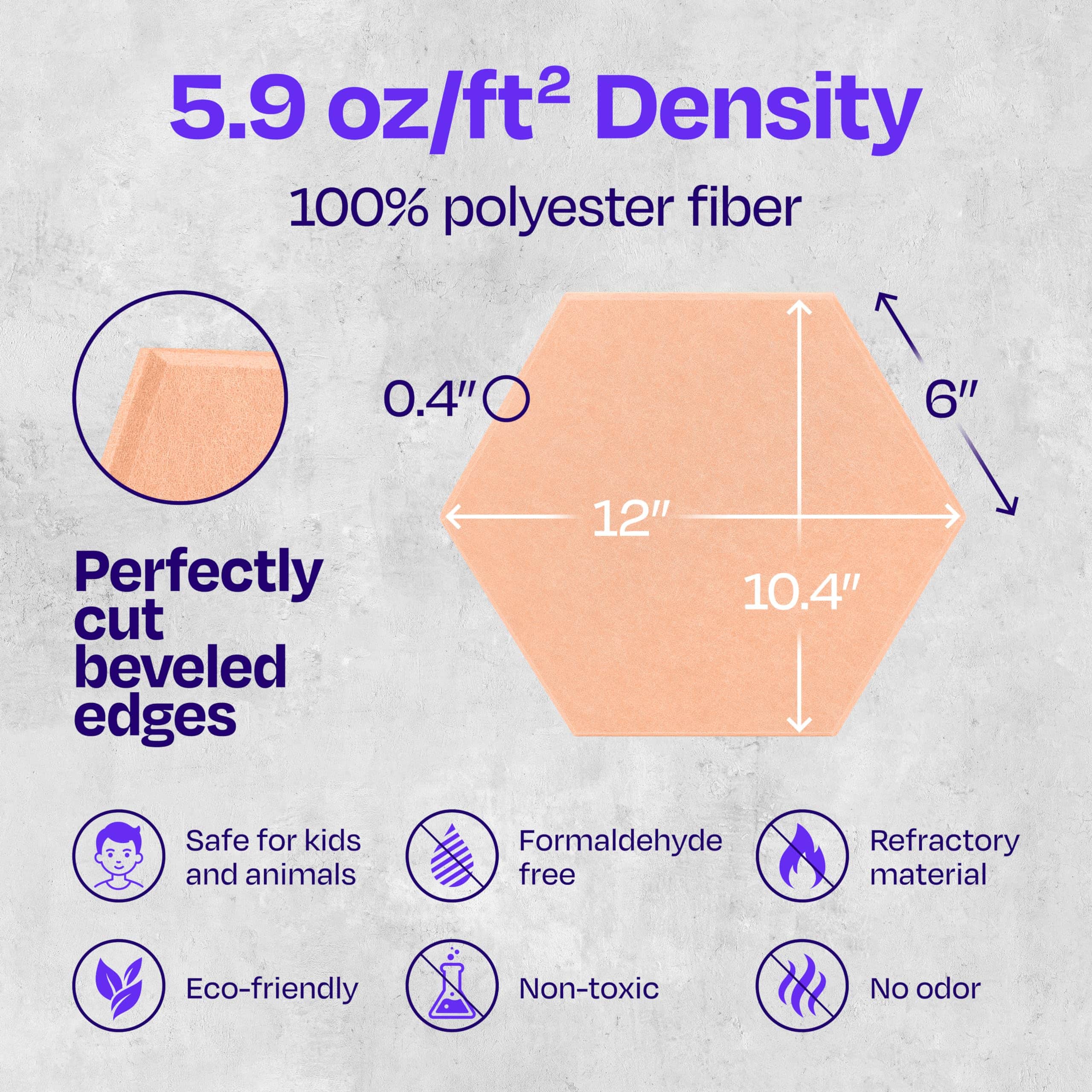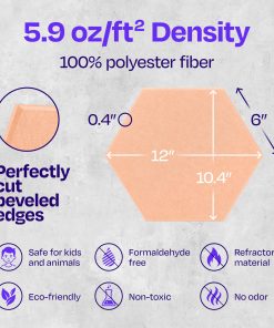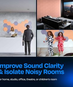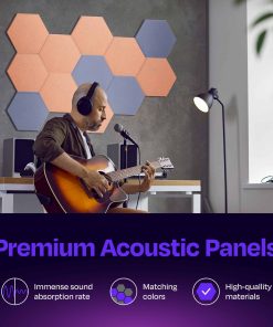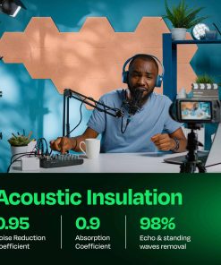 1. PANELES ACÚSTICOS DE ALTA DENSIDAD: Mejora la calidad del sonido y reduce los ecos y reverberaciones en tu hogar, oficina, estudio de podcast, sala de conferencias y más. Dale a tu espacio lo que necesita con nuestros hermosos paneles absorbentes de sonido y mantén los ruidos no deseados al mínimo. 2. FÁCILES DE INSTALAR Y VERSÁTILES: Nota – No se incluye adhesivo. Para obtener los mejores resultados de instalación, recomendamos usar un adhesivo de construcción aplicado en cada esquina, o una cinta de doble cara resistente. Perfectos como tratamientos acústicos para estudio de grabación, nuestros paneles mejorarán la acústica de tu dormitorio, sala de estar, oficina en casa, sala de blog, etc. 3. POTENCIA TU CREATIVIDAD: Nuestros hermosos paneles acústicos con bordes biselados vienen en una variedad de colores. Son personalizables, fáciles de cortar y fáciles de instalar. Elige una alternativa más atractiva a los antiguos paneles de espuma aislante acústica y utiliza una combinación de nuestros paneles decorativos de aislamiento acústico para iluminar cualquier espacio. 4. PANELES SUPERIORES DE REDUCCIÓN DE RUIDO: Cada panel insonorizante está cortado con precisión de paneles de poliéster de alta densidad, 1700gr/m2. Nuestros paneles aislantes de sonido para pared alcanzan una calificación de NRC de hasta 0.95, lo que marca una gran diferencia en los sonidos que escuchamos a nuestro alrededor. Elige estos paneles acústicos de hexágono sobre los viejos paneles de espuma acústica y crea una habitación hermosa con una calidad de sonido superior. 5. AMIGABLE CON EL MEDIO AMBIENTE Y SEGURO DE USAR: Cada panel acústico contiene el equivalente a 4 botellas de agua recicladas, sacadas directamente de los océanos. Además, son inodoros, libres de formaldehído, retardantes de llama, no emiten gases y son seguros para respirar y tocar.