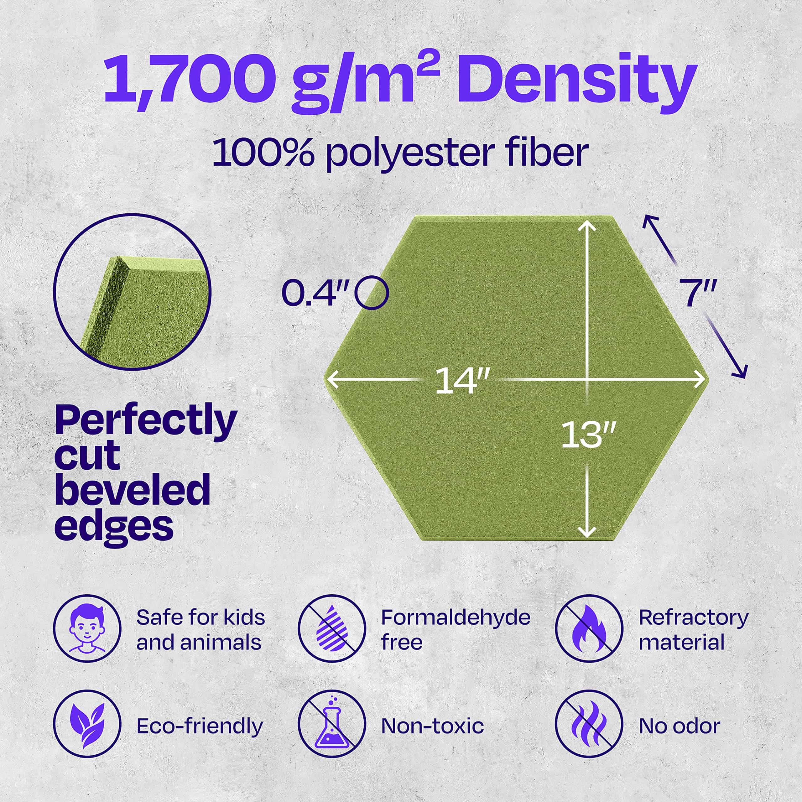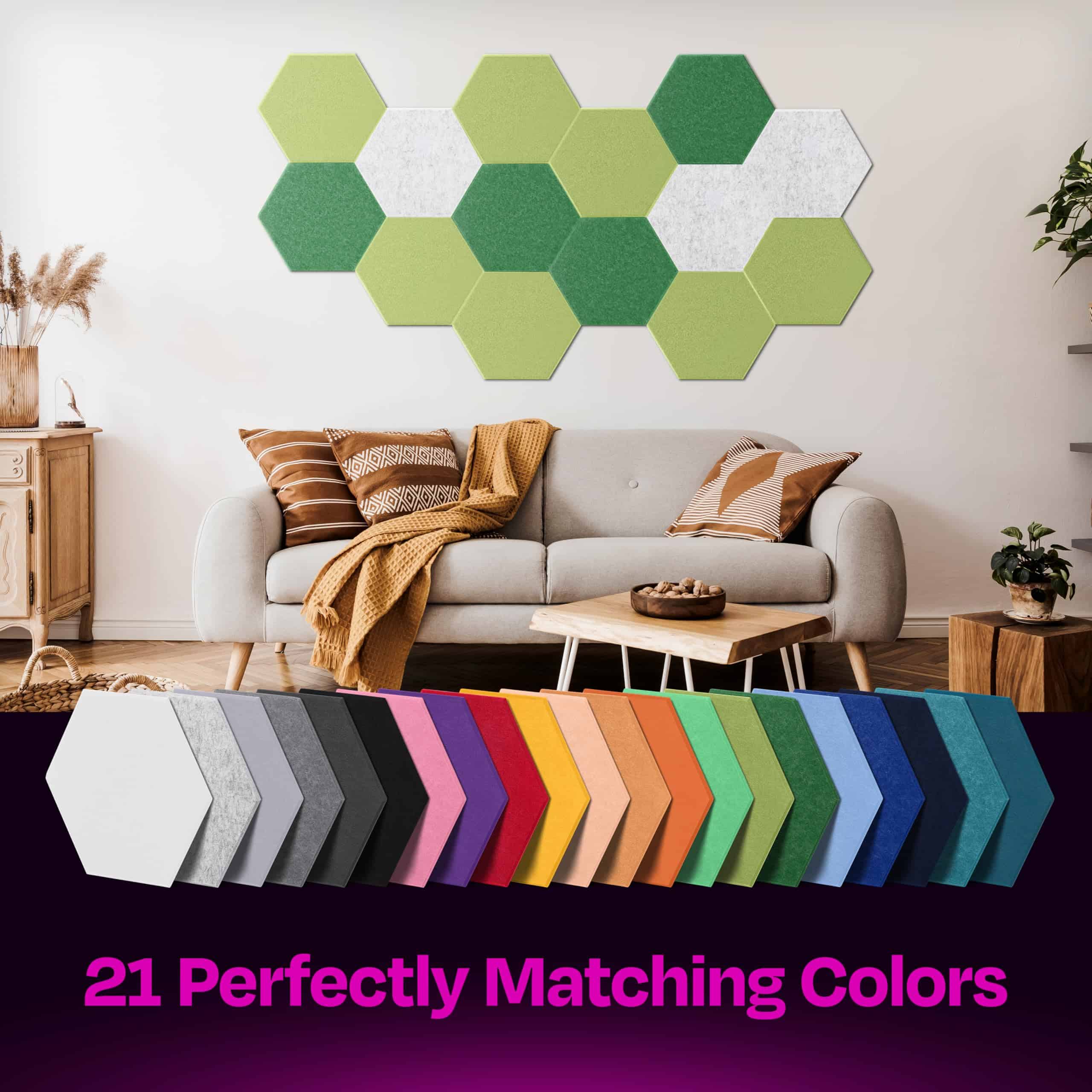 Hechos de poliéster de alta densidad, cada panel está meticulosamente cortado para proporcionar la máxima absorción de sonido y reducción de ruido. No solo son funcionales, sino que también son visualmente atractivos, con su diseño hexagonal único que agrega un toque de estilo moderno a cualquier habitación.