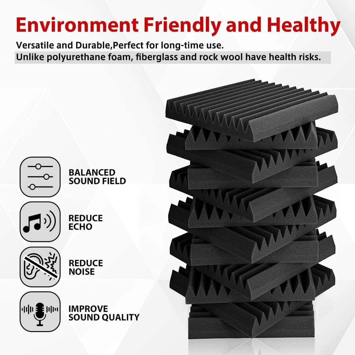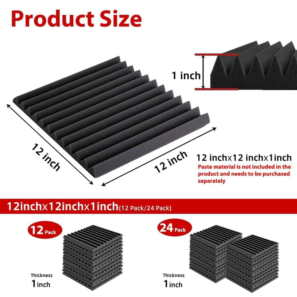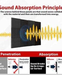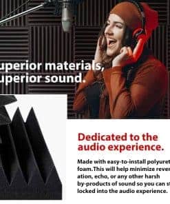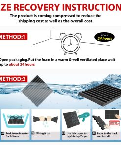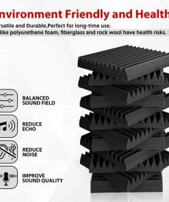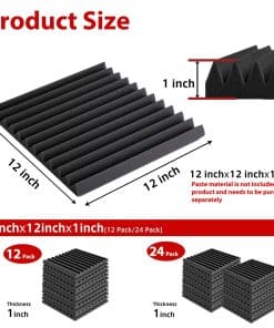 1. Expansión Rápida Lo que hace que nuestros paneles de espuma acústica sean únicos es que se hinchan rápidamente a su forma y tamaño completo. ¡Normalmente tardan unas 24 horas en expandirse, NO ES NECESARIO esperar 2-3 días y ahorran mucho tiempo! ¡Ya no tendrás que preocuparte por el paquete sellado al vacío! 2. Alta Densidad – Absorción de Sonido Profesional Hechos con espuma acústica flexible de grado profesional, nuestros paneles son densos y consistentes en firmeza, garantizando un rendimiento confiable de absorción acústica. Son perfectos para eliminar ecos y sonidos de fondo en salas de video, grabación de audio, entrevistas, reuniones, podcasts, en vivo, música y juegos. 3. Mejora la Calidad y Claridad del Sonido Nuestros paneles acústicos de alta densidad pueden eliminar eficazmente las ondas estacionarias y el eco. El sonido se escucha menos áspero y mucho más claro después de instalar estos paneles en la pared o techo. Perfectamente adecuado para salas de video, grabación de audio, entrevistas, reuniones, podcasts, en vivo, música y juegos. 4. Fácil de Instalar Los paneles de espuma acústica son ligeros y se pueden instalar en una variedad de superficies diferentes. Fáciles de dar forma y cortar a medida, alterar no afectará el rendimiento de la espuma acústica. No se necesitan herramientas especiales para la instalación. Nota: La cinta adhesiva/doble o el pegamento no está incluido en el paquete y debe comprarse por separado. 5. Especificaciones y Garantía de Servicio – Cada paquete viene con un conjunto de 48 paneles de espuma acústica que cubre un total de 48 pies cuadrados. La dimensión es de 12 x 12 pulgadas de 1 pulgada (desde la base hasta su pico) para cada baldosa. Si tiene alguna pregunta sobre nuestros Paneles de Espuma Acústica, no dude en ponerse en contacto con nosotros, le responderemos en un plazo de 24 horas y le daremos una solución satisfactoria.