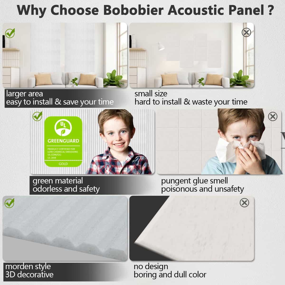 Paneles Acústicos Grandes Bobobier con Autoadhesivo, 48″ X