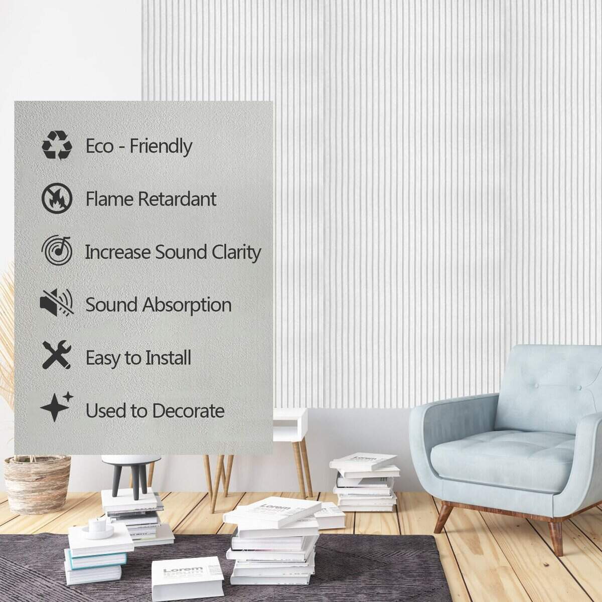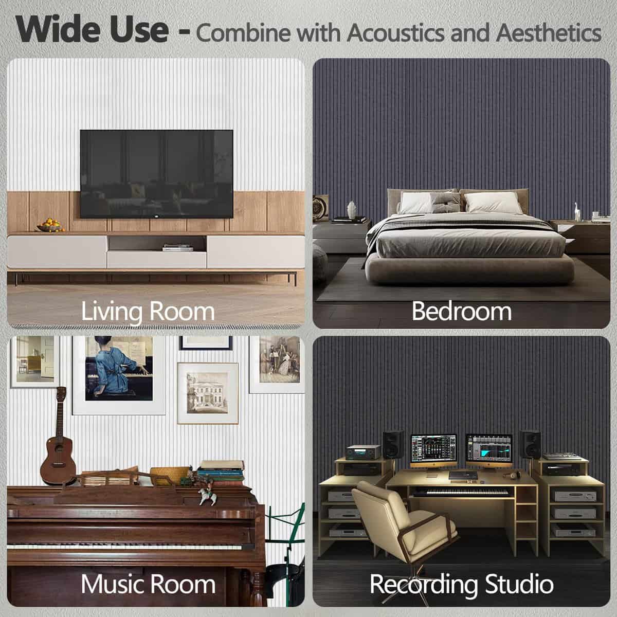 Acoustic panel. Bobobier paneles acústicos grandes son la solución perfecta para mejorar la calidad del sonido en cualquier espacio. Con su área extra grande, estos paneles ofrecen un mayor rendimiento en la absorción de ruido y eliminación de ecos. Hechos de fibra de poliéster de alta calidad, los paneles son resistentes al fuego, duraderos y seguros para adultos y niños. Fáciles de instalar con cinta nano adhesiva incluida, estos paneles son ideales para estudios en casa, gimnasios, salas de juegos, oficinas y más. Además de su función práctica, el diseño a rayas clásico de los paneles los convierte en una decoración mural elegante que puede embellecer cualquier espacio interior. Transforma tu entorno acústico con los paneles acústicos Bobobier y disfruta de un sonido de calidad en tus actividades diarias.