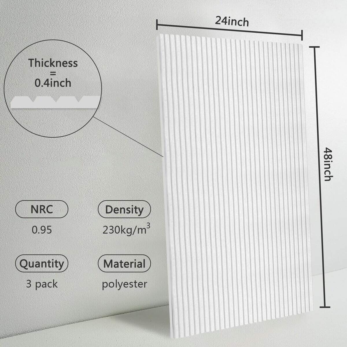 Bobobier paneles acústicos grandes área extra grande de 48 x 24 x 0.4 pulgadas, hechos de fibra de poliéster de calidad con efecto insonorizante superior, 3 paneles grandes para mejor cobertura. Fáciles de cortar en forma personalizada. Apto para diferentes espacios como estudios en casa, gimnasios, salas de juegos, oficinas, etc.