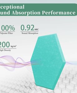 2. Elegante y Creativo Ofrecemos paneles absorbentes de sonido hexagonales en el tamaño de 12″X10″X0.4″, disponibles en 18 colores. Son fáciles de cortar en cualquier forma, lo que te permite liberar tu creatividad y diseñar un espacio vibrante y dinámico.