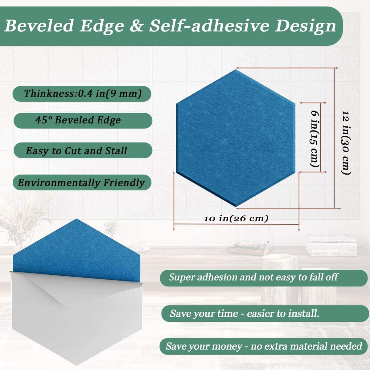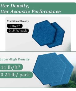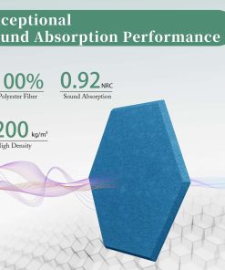 2. Elegante y Creativo Ofrecemos paneles absorbentes de sonido hexagonales en el tamaño de 12″X10″X0.4″, disponibles en 18 colores. Son fáciles de cortar en cualquier forma, lo que le permite liberar su creatividad y diseñar un espacio vibrante y dinámico.