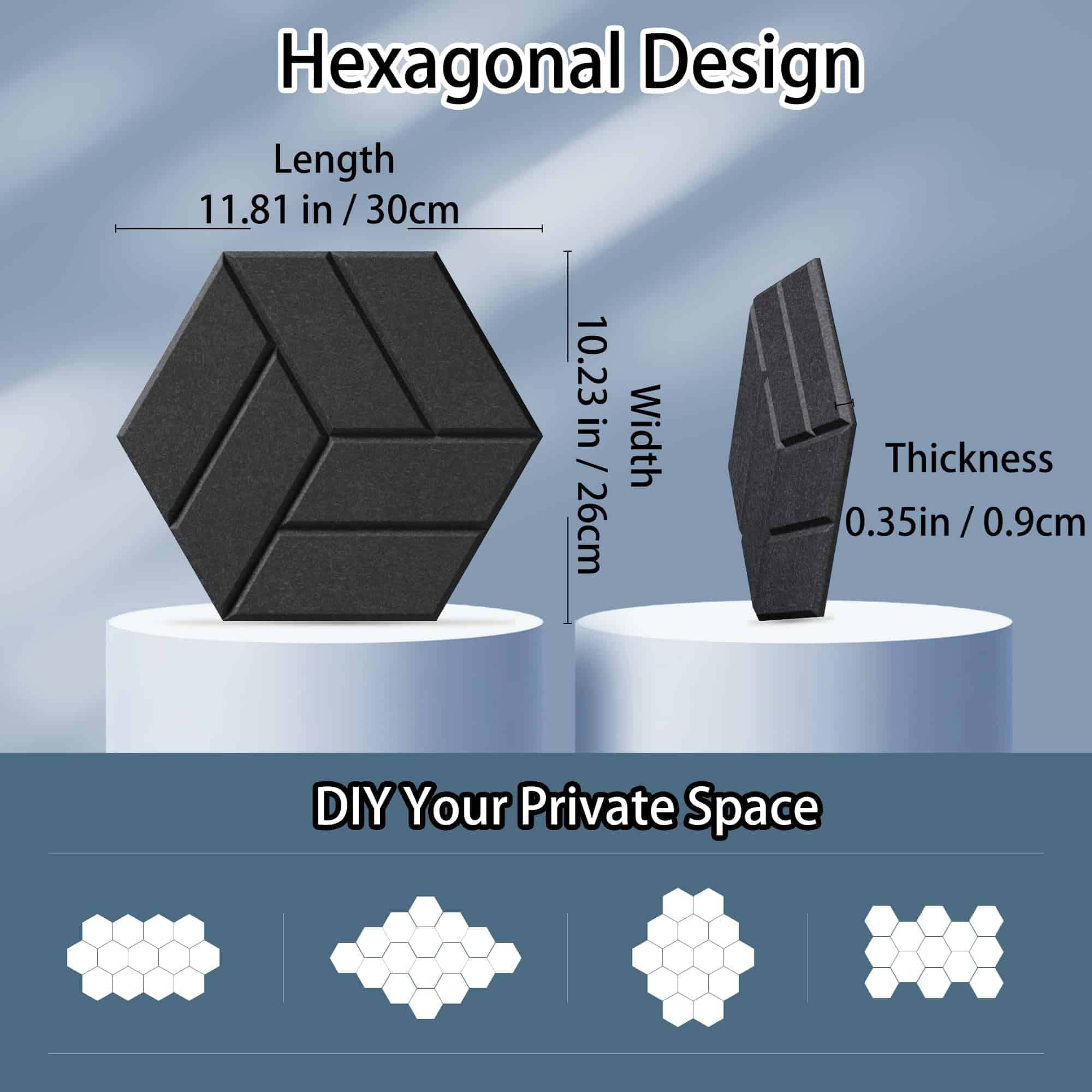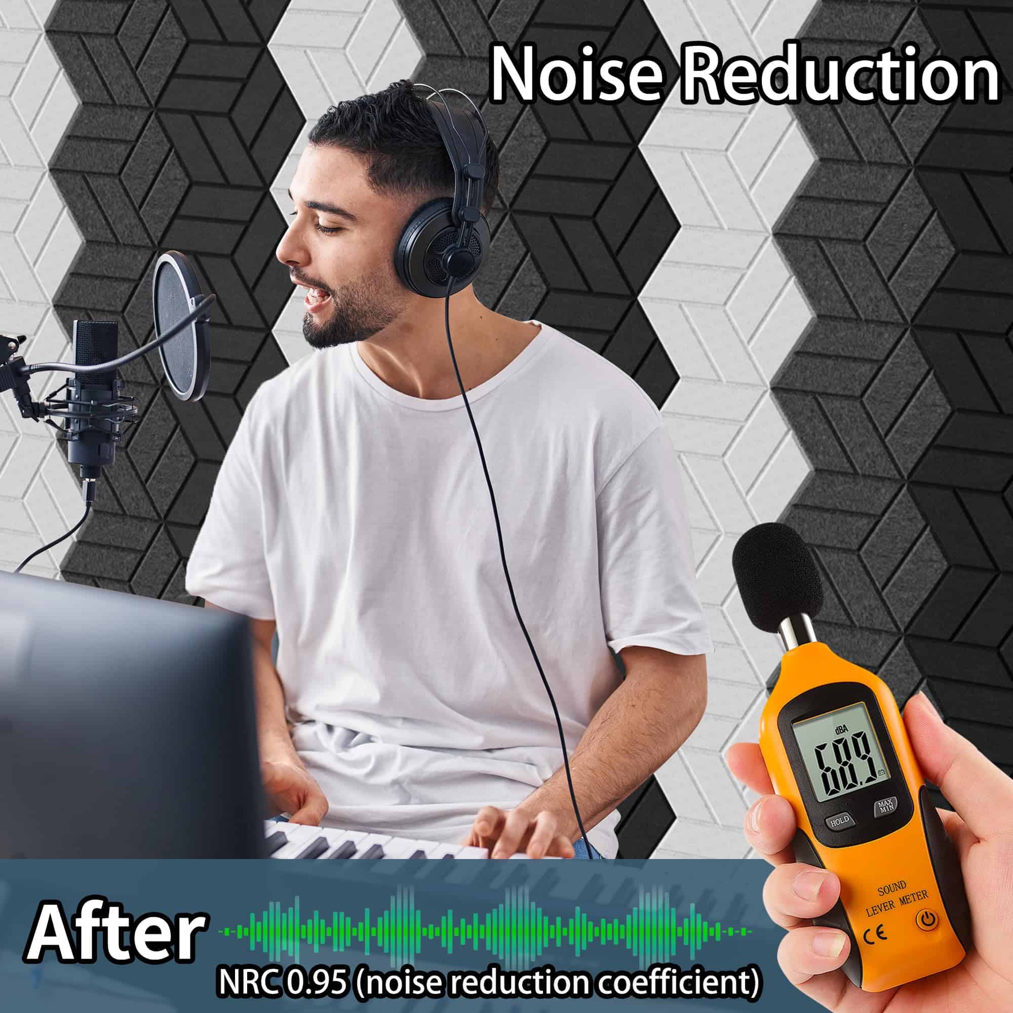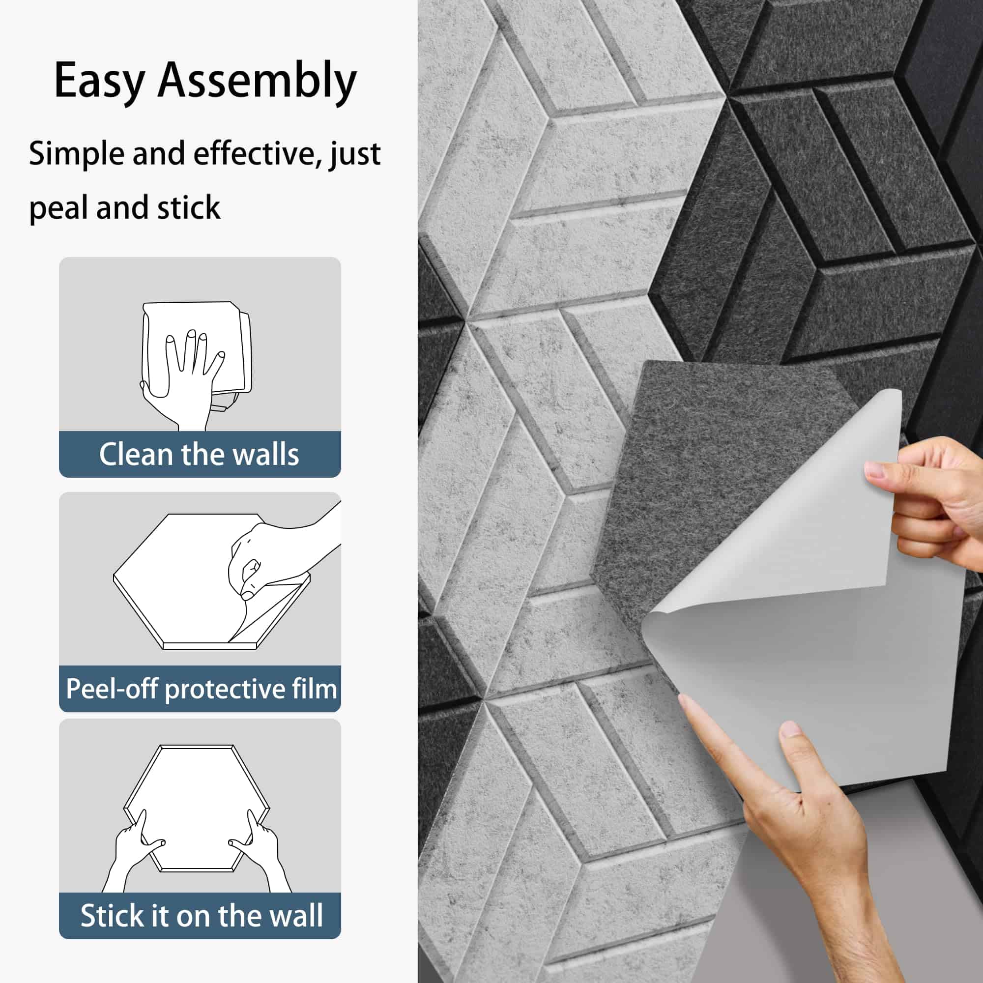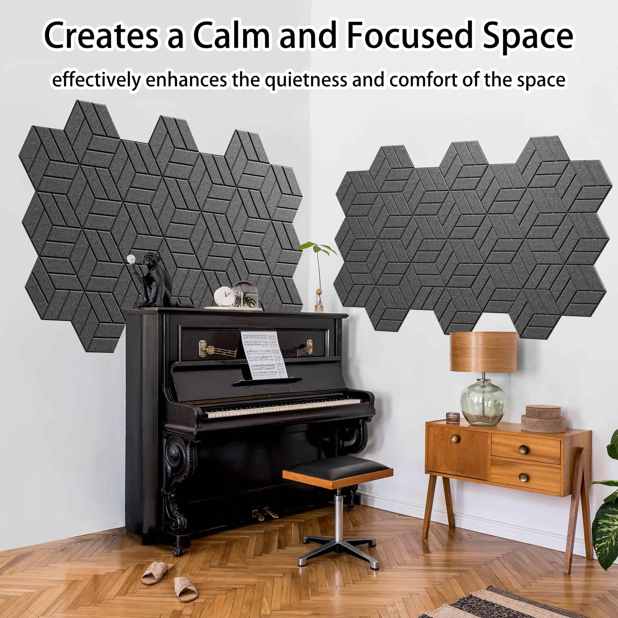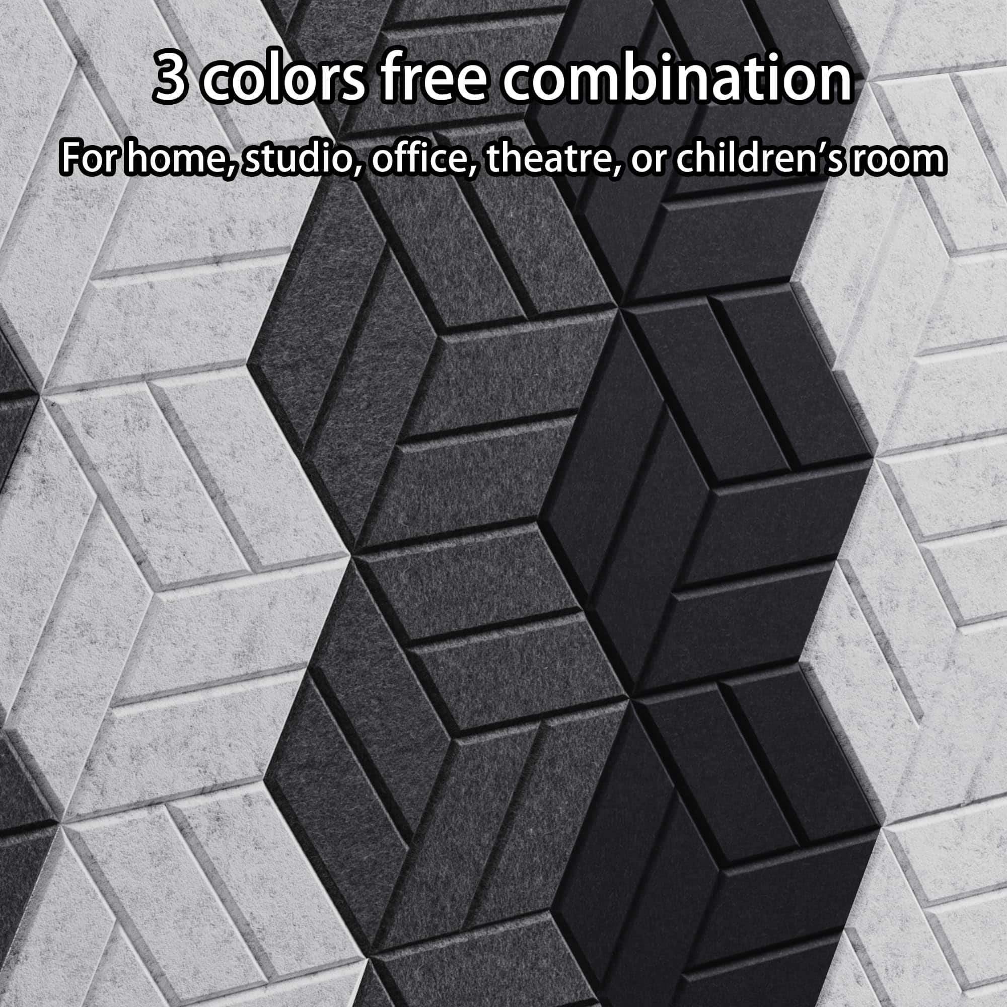 1. Aislamiento acústico y reducción de ruido: los paneles acústicos pueden bloquear eficazmente la propagación del sonido, reduciendo considerablemente la interferencia del ruido externo en interiores, o disminuir la propagación del sonido interior hacia el exterior, creando un entorno más silencioso para las personas. 2. Materiales de alta densidad: los paneles de pared acústicos están hechos de fibra de poliéster con resistencia al agua, resistencia al calor, resistencia a los rayos ultravioleta y otras características, no se degradarán debido a la lluvia, cambios de temperatura y otros factores naturales que conduzcan a una disminución del rendimiento o anomalías en la calidad. 3. Estética fuerte: los paneles de espuma aislante adoptan un diseño hexagonal de moda, que se puede combinar con una variedad de colores y formas, y se puede cortar fácilmente con un cuchillo para crear la forma deseada. Además de cumplir con la función de aislamiento acústico, también se puede utilizar como un elemento decorativo, integrado en el estilo general de arquitectura o decoración interior, para mejorar la estética del entorno. 4. Alta economía: los paneles de pared aislantes adoptan una construcción ensamblada, lo que puede mejorar la eficiencia laboral y acortar el tiempo de construcción, ahorrando así en costos de construcción y mano de obra. 5. Fácil instalación: la parte trasera del panel acústico viene con adhesivo, simplemente retire la capa protectora directamente al utilizarlo, estos paneles de alta densidad son perfectos para insonorización y decoración de paredes, asegurando la mejor calidad de sonido en estudios, teatros, oficinas y hogares.