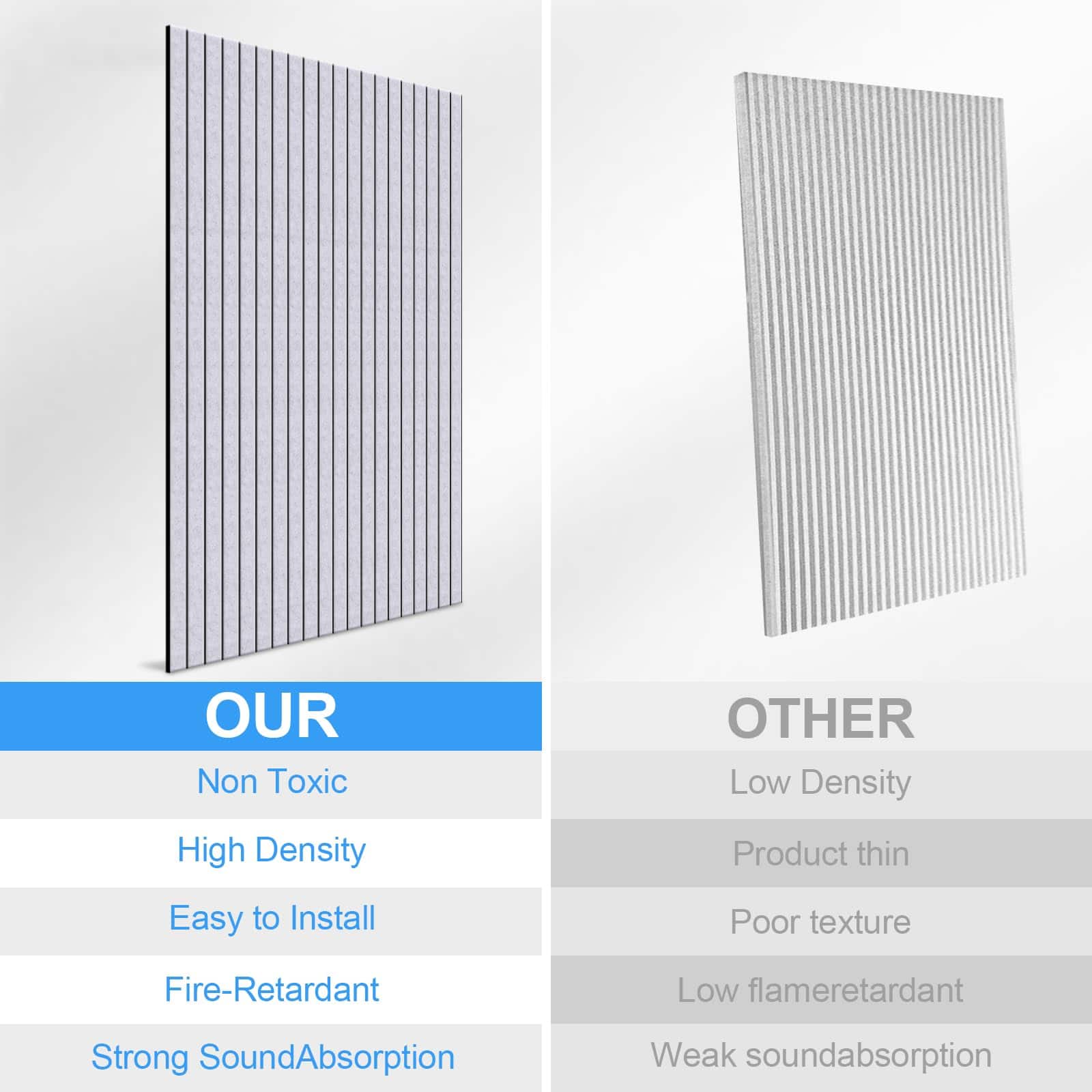 1. MATERIAL DE ALTA CALIDAD: Fabricados con fibra de poliéster premium, estos paneles acústicos proporcionan un aislamiento acústico superior en comparación con los paneles de espuma acústica estándar para paredes. Ignífugos y duraderos, son seguros para adultos, niños y mascotas, lo que los hace perfectos para cualquier espacio.