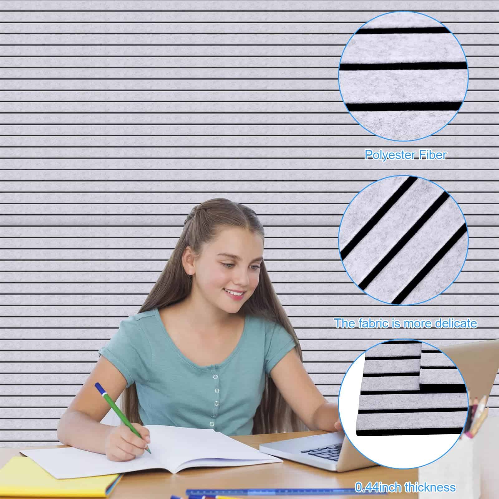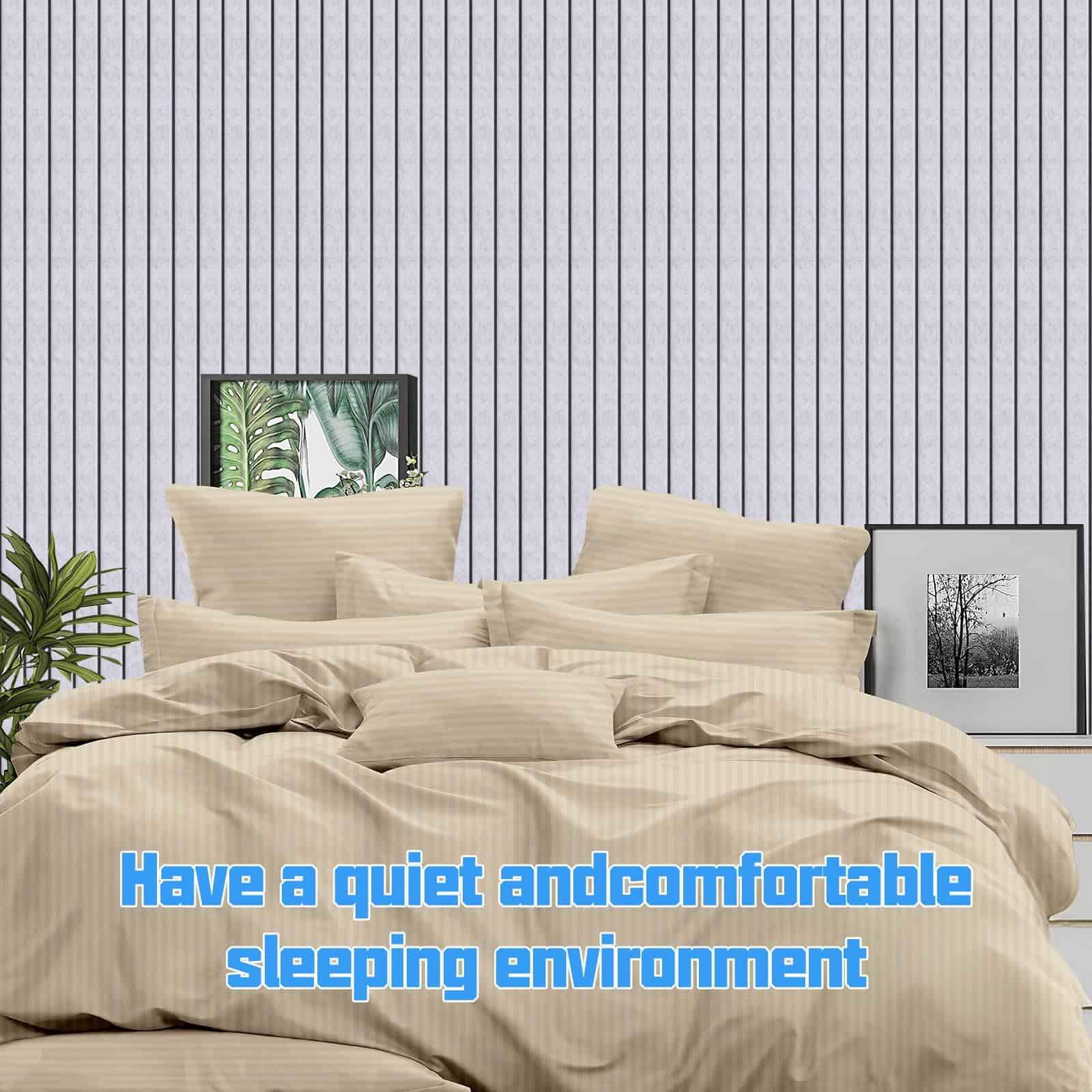 4. DISEÑO ELEGANTE Y FUNCIONAL: Con un patrón de rayas clásico y surcos en V de 1.2 pulgadas, estos paneles de pared insonorizantes no solo mejoran la calidad del sonido, sino que también añaden un toque decorativo a su habitación. Cree paneles de pared acústicos visualmente atractivos que complementen cualquier decoración.