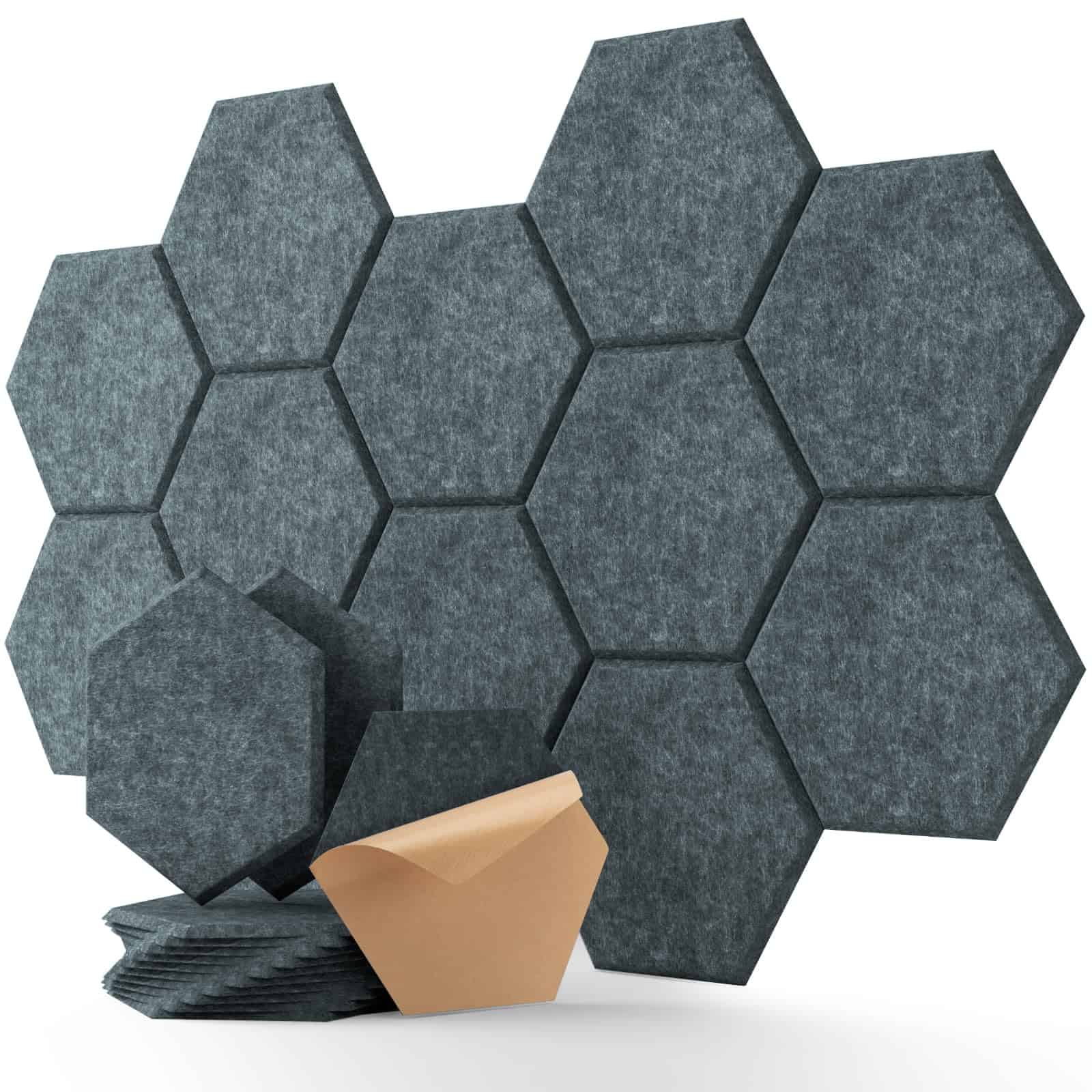 Paneles Acústicos Soundsbay, Paquete de 12 Paneles Hexagonales Absorbentes de Sonido de Alta Densidad, Paneles de Espuma Insonorizante para Paredes, Oficina, Estudio de Grabación, Techo 12″ X 10″ X 0.4″. Los paneles acústicos Soundsbay ofrecen una solución efectiva para mejorar la calidad del sonido en cualquier entorno, ya sea en una oficina, estudio de grabación o en casa. El principio absorbente de sonido de alta calidad y la estructura porosa de estos paneles capturan y absorben las vibraciones del aire en las ondas de sonido, lo que reduce la reflexión del sonido y el eco, mejorando la claridad y pureza del sonido. Los paneles autoadhesivos facilitan su instalación, ya que no se necesita adhesivo o cinta adicional, solo es necesario pelar el papel kraft en la parte trasera y presionar firmemente para asegurar que permanezcan en su lugar. Hechos de fibra de poliéster de alta calidad, los paneles acústicos son duraderos y resistentes al desgaste, lo que garantiza una larga vida útil. Además, su fácil desmontaje los hace prácticos y versátiles, simplemente caliente los paneles con un secador de pelo antes de pelarlos para evitar daños en la pared. Mejora tu experiencia auditiva con los paneles acústicos Soundsbay.