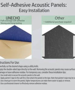 3. Instalación Fácil Todos nuestros paneles acústicos vienen con respaldo autoadhesivo. No se necesitan herramientas adicionales, simplemente despega el respaldo y pégalos donde los necesites.