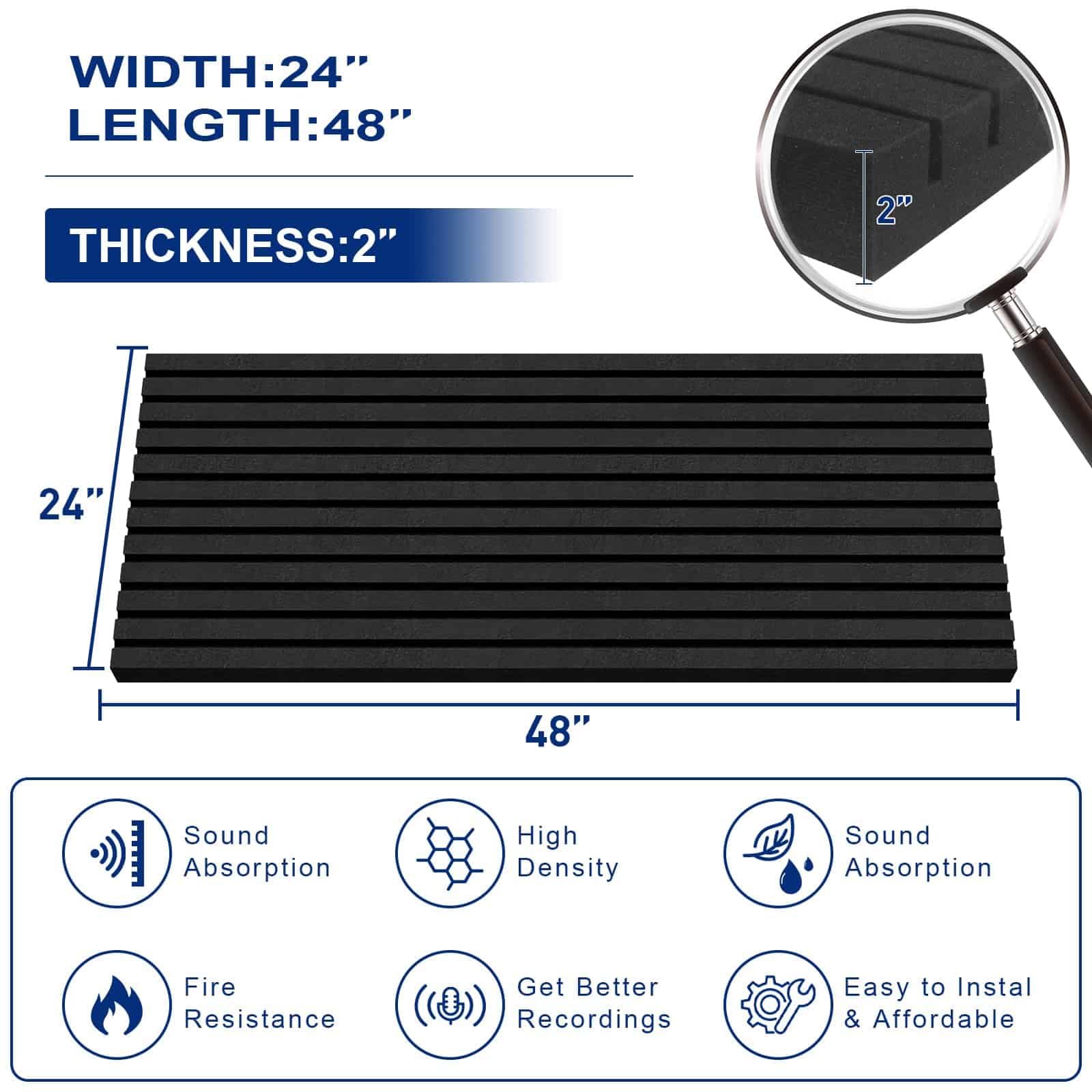 Paneles de Espuma Acústica HWLIYUTAI, 48 x 24 x 2 pulgadas,