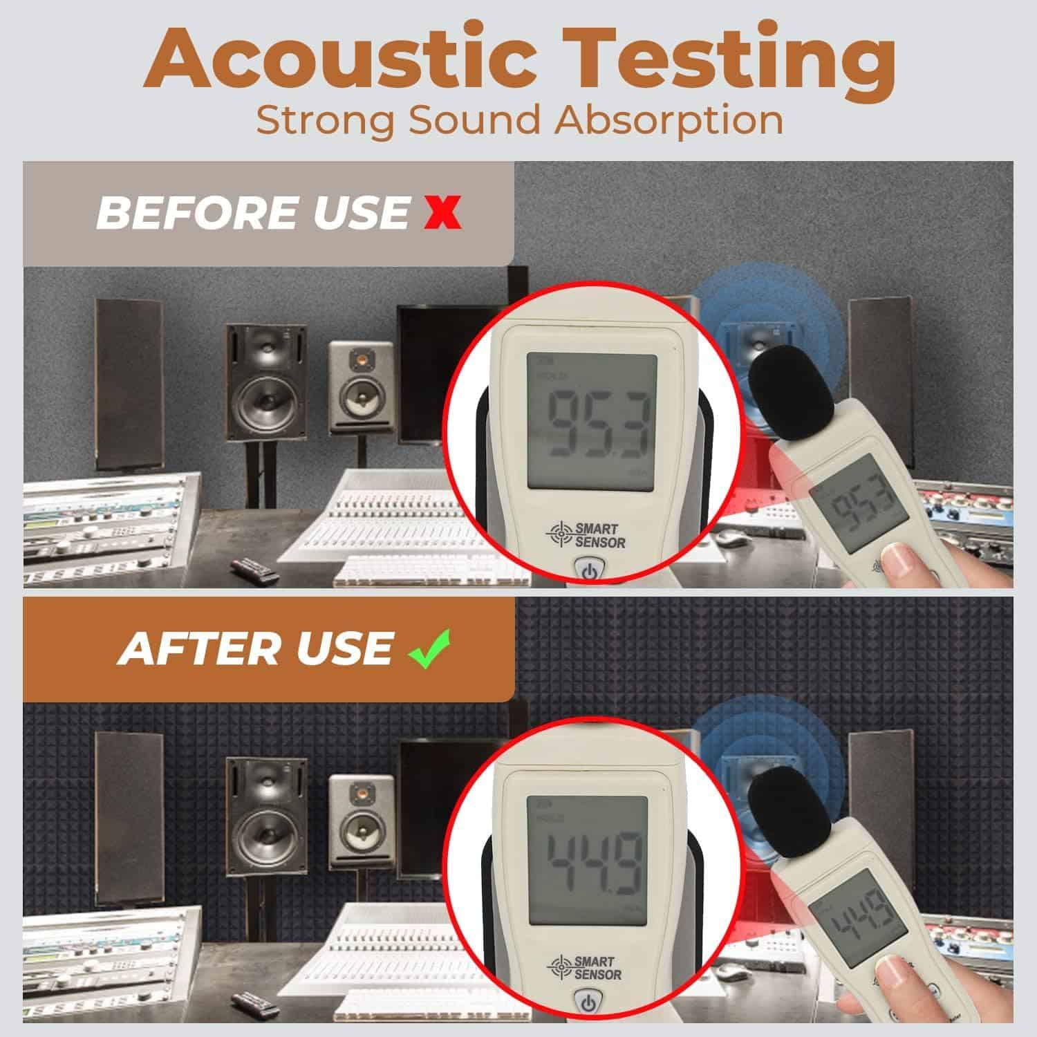 Mejore su entorno acústico con nuestro Paquete de 12 Paneles de Espuma Acústica Diseñados en Forma de Pirámide de 12 x 12 x 2 Pulgadas. Estos paneles de espuma insonorizante están diseñados de manera experta para ofrecer una absorción de sonido superior, lo que los convierte en una solución ideal para reducir el ruido no deseado y mejorar la calidad del sonido en su espacio. La forma piramidal ofrece una superficie más grande, capturando y difundiendo eficazmente las ondas sonoras. Este diseño realza el atractivo estético de su espacio mientras maximiza la absorción del sonido, lo que hace que estos paneles sean perfectos para estudios, salas de grabación, teatros en casa, salas de juegos y más. Fabricados en espuma de poliuretano de alta densidad, estos paneles están diseñados para proporcionar un aislamiento acústico excepcional. La espuma densa garantiza que las ondas sonoras se absorban de manera eficiente, reduciendo ecos y reverberaciones, lo que los convierte en ideales para cualquier entorno donde la claridad del sonido es esencial. La seguridad es una prioridad, y nuestros paneles acústicos están tratados para ser resistentes al fuego, garantizando que cumplan con las normas de seguridad contra incendios al tiempo que ofrecen un excelente rendimiento de aislamiento acústico. Estos paneles de espuma se pueden instalar fácilmente en paredes o techos, lo que le permite personalizar su tratamiento acústico. Ya sea que necesite cubrir una pared entera o colocar estratégicamente paneles, la flexibilidad hace que la instalación sea fácil y sin problemas. Ya sea que esté equipando un estudio de grabación profesional, un teatro en casa o simplemente tratando de reducir el ruido en una oficina en casa, estos paneles de espuma acústica son lo suficientemente versátiles para satisfacer sus necesidades. Mejore las grabaciones de podcast, minimice el ruido externo o mejore la calidad del sonido de su sala de juegos con facilidad. El elegante color negro de los paneles no solo optimiza el aislamiento acústico, sino que también agrega un toque moderno a cualquier espacio. Su color neutral les permite fundirse perfectamente con su decoración existente mientras proporcionan un aspecto profesional y pulido. Fabricados con materiales respetuosos con el medio ambiente, estos paneles de espuma están diseñados para una durabilidad a largo plazo, manteniendo su forma y propiedades de aislamiento acústico con el tiempo
