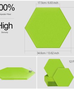 Los paneles acústicos de JBER cuentan con un diseño clásico que ofrece una excelente atenuación del sonido y absorción de ecos. Hechos de fibra de poliéster de alta densidad, son un absorbente de sonido de banda ancha perfecto para habitaciones como estudios de grabación, salas de cine en casa, oficinas, etc. Una opción asequible para insonorizar una habitación de cualquier tamaño, nuestros paneles de espuma acústica, ya sean en forma de cuña, convolutos, biselados o hexagonales, son fáciles de dar forma y cortar a medida. Están diseñados para atrapar el eco, eliminar el eco y reducir el ruido. Además, vienen con soporte técnico de por vida para garantizar su satisfacción. Gran calidad, gran servicio, gran precio, ¡este producto es lo que está buscando! Es fácil de cortar con un cuchillo y tiene múltiples opciones de color. ¡Solo hazlo tu propio estilo! El paquete incluye: – Juego de 12 Paneles de Absorción Acústica – 14″ x 12″ x 0.4″