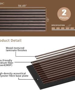 2. Materiales ecológicos y fáciles de instalar: Hechos con materiales ecológicos, estos paneles de madera para pared son una excelente manera de mejorar la acústica de tu hogar u oficina mientras minimizas tu impacto en el medio ambiente. Su instalación sencilla significa que puedes disfrutar de una excelente calidad de sonido y un aspecto de diseñador en solo minutos.