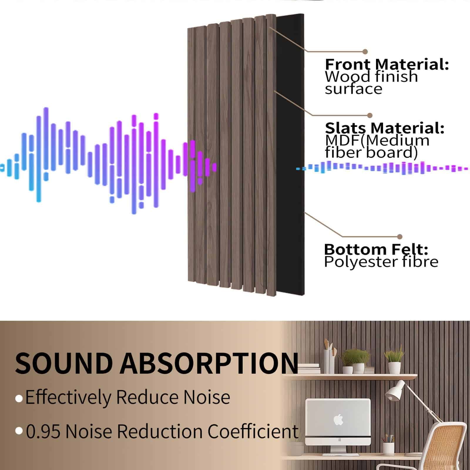 3. Adecuado para diversos entornos interiores: Ya sea que estés trabajando desde casa o creando un cine en casa personal, los paneles de madera acústicos KVENI proporcionan una reducción excepcional del ruido y aislamiento acústico. Perfectos para salas de recreo, estudios y otros espacios donde desees disfrutar de audio de alta calidad sin molestar a los vecinos.