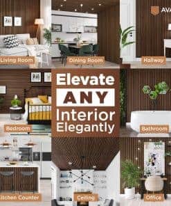 4. Construcción segura y ecológica Elaborados con precisión, estos listones de madera para pared priorizan la seguridad y la sostenibilidad. Hechos de tablero de fibra de densidad media (MDF) de calidad y fibra de poliéster de alta densidad, nuestro panel de madera estriada garantiza un rendimiento acústico y mantiene bajas emisiones químicas. Elija el panel de pared de madera por un compromiso con la seguridad y las prácticas ecológicas. Disfrute del diseño superior del panel de lamas de pared vertical de madera y la sofisticación adicional del panel de madera para pared.